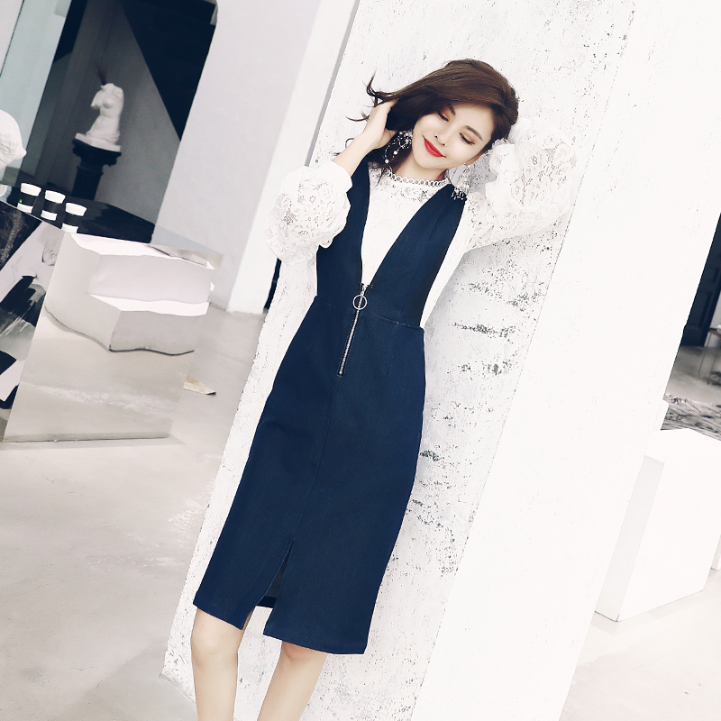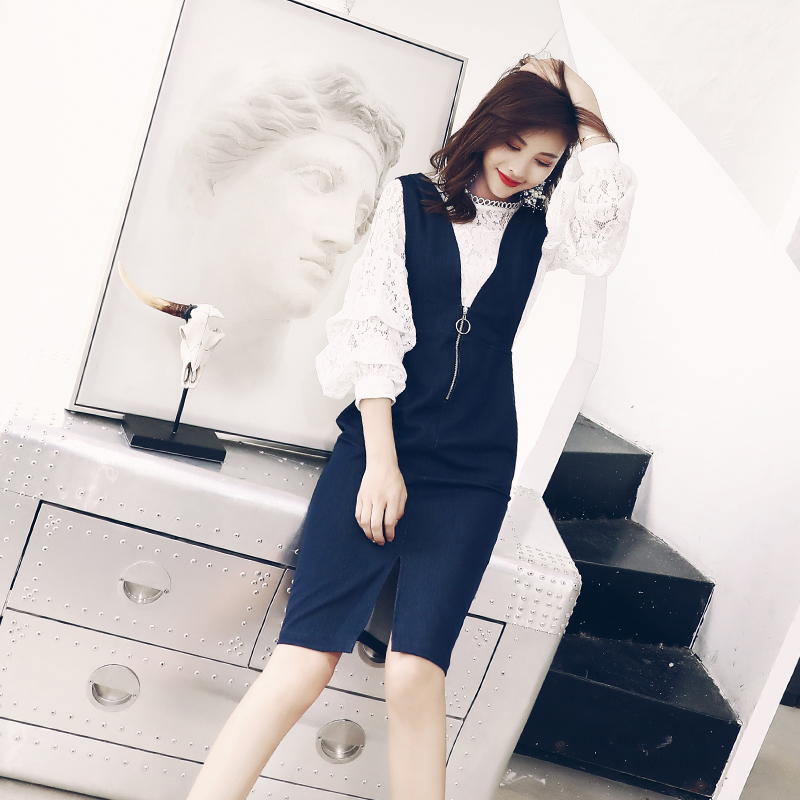 s秀時尚背帶裙2018夏季新款寬松網紗上衣背帶連衣裙套裝女兩件套