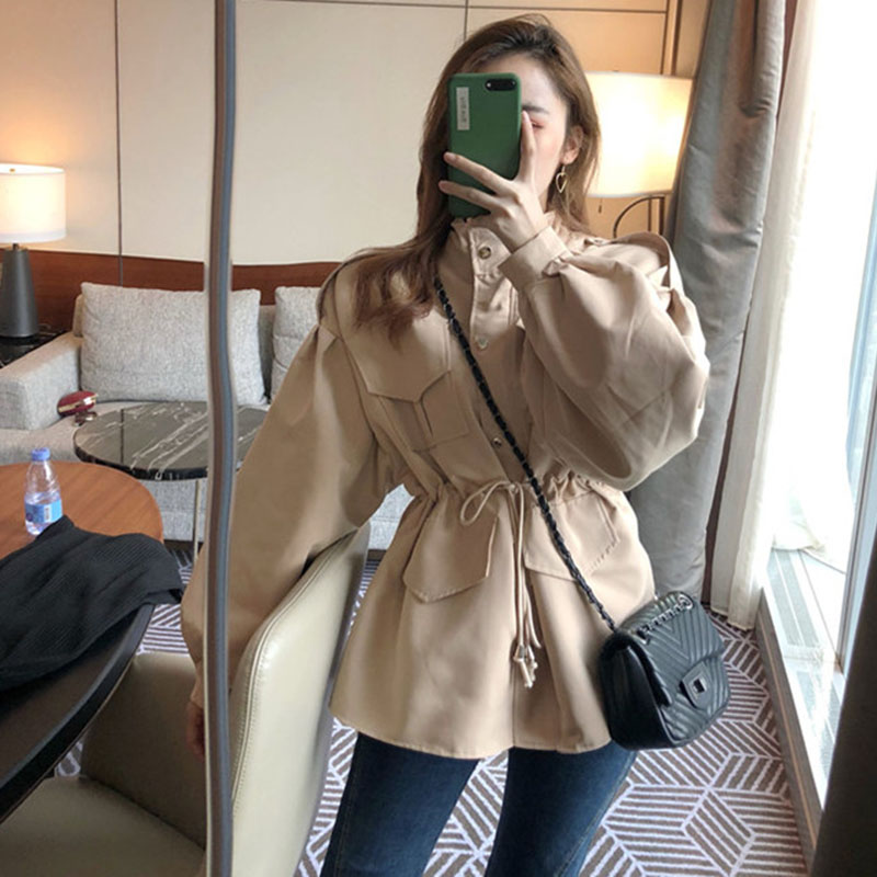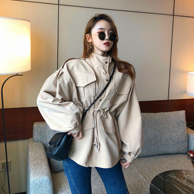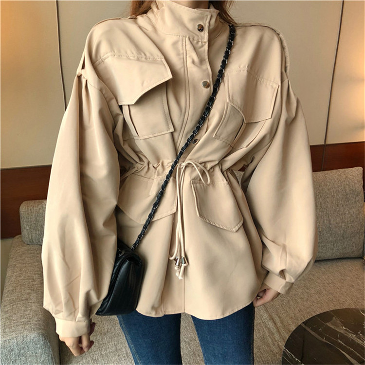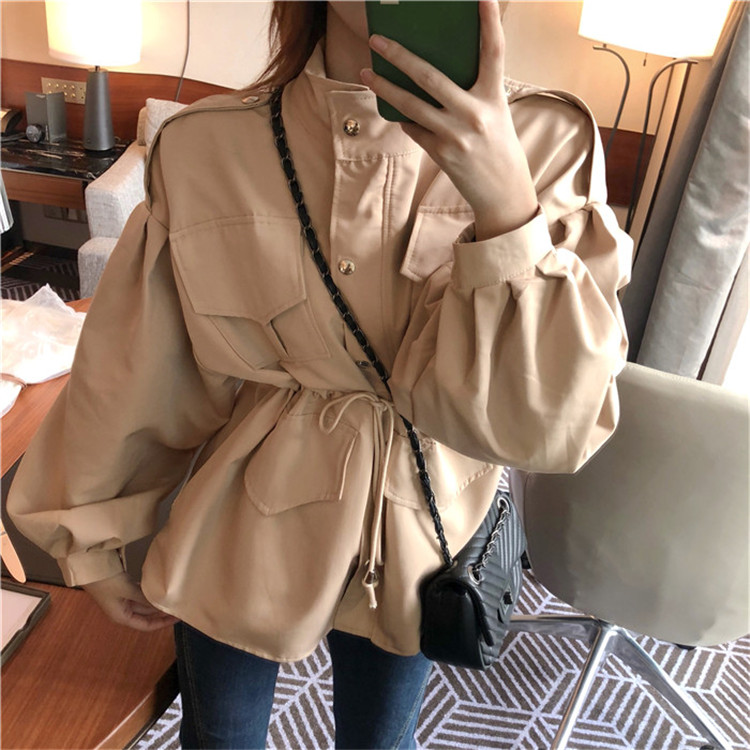 港風寬松復古時尚工裝風衣女中長款韓版秋季2018新款收腰短外套女