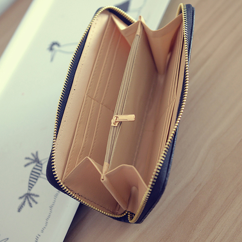 新款女手包漆皮手拿錢包女士長款拉鏈大鈔夾手提錢夾鱷魚紋包