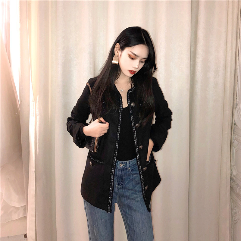 復古粗花呢小香風毛呢外套女冬季大衣女新款2018韓版短款呢子大衣
