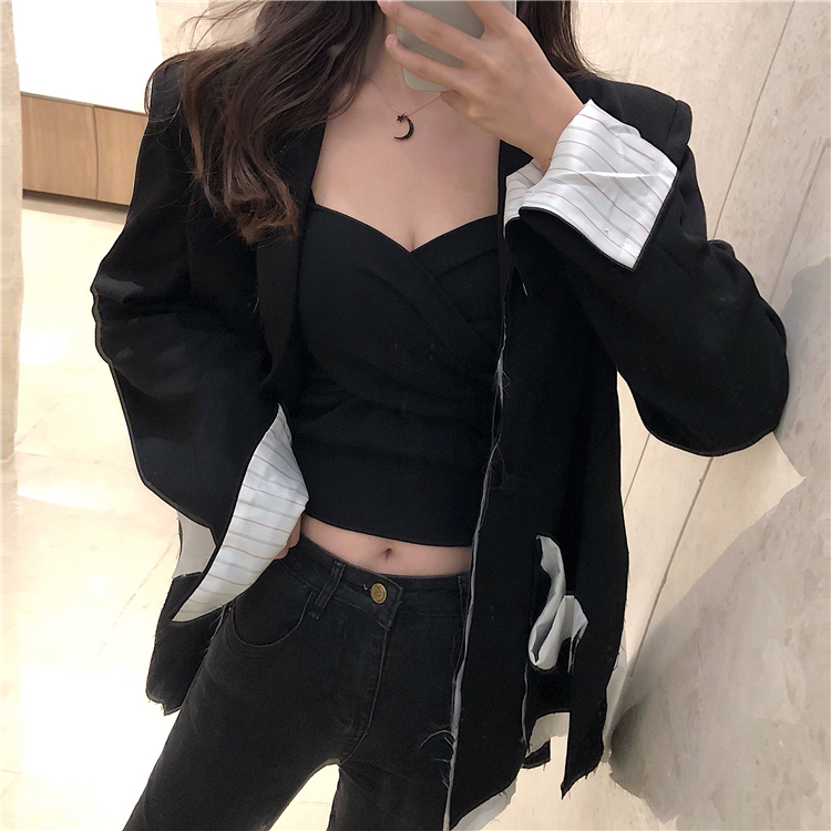 韓版時尚秋裝女2018新款百搭款內搭外穿都好看的交叉帶胸墊小吊帶