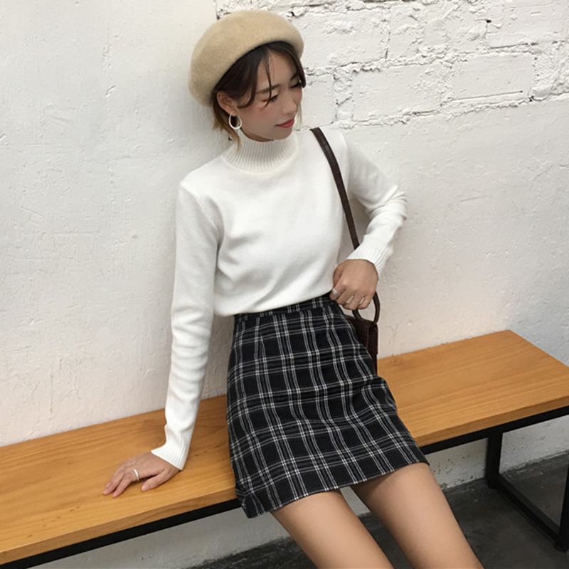 / 學院風格子半身裙女高腰包臀短裙2018秋裝新款顯瘦黑色a字一步裙