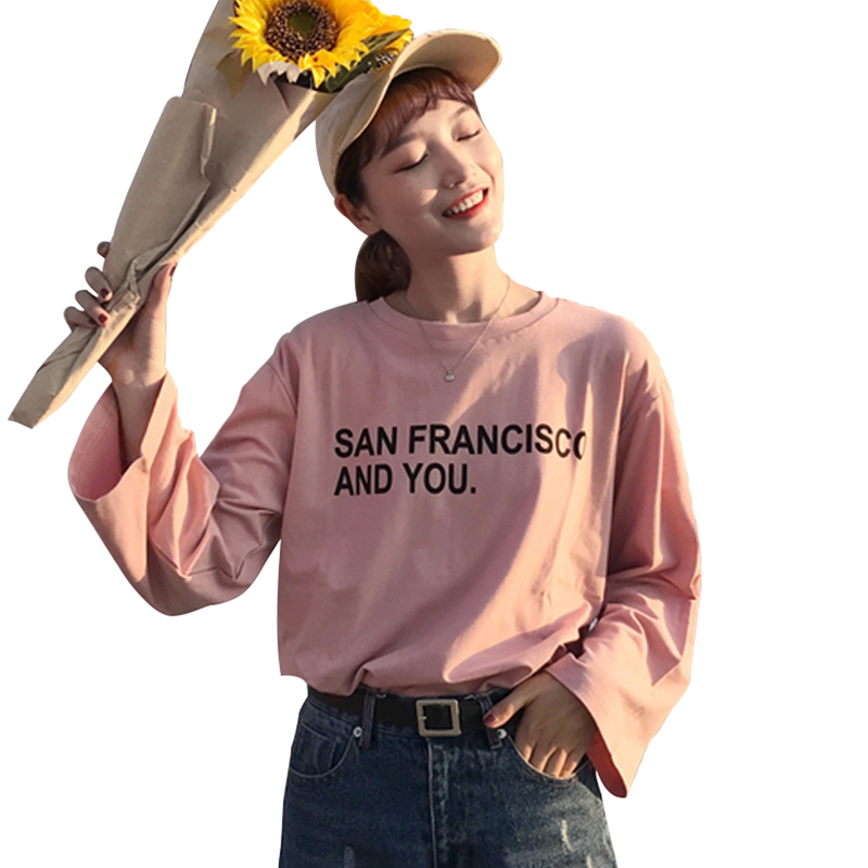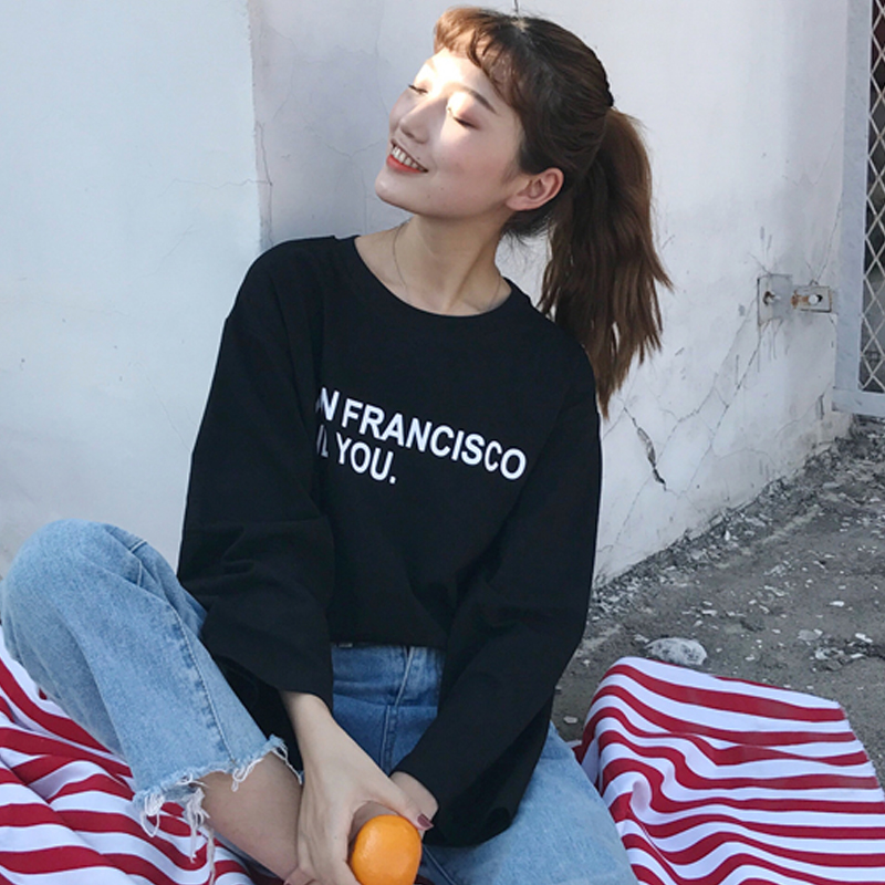 / 秋裝女裝新款韓版小清新簡約字母寬松百搭長袖T恤上衣學生打底衫