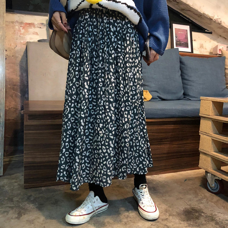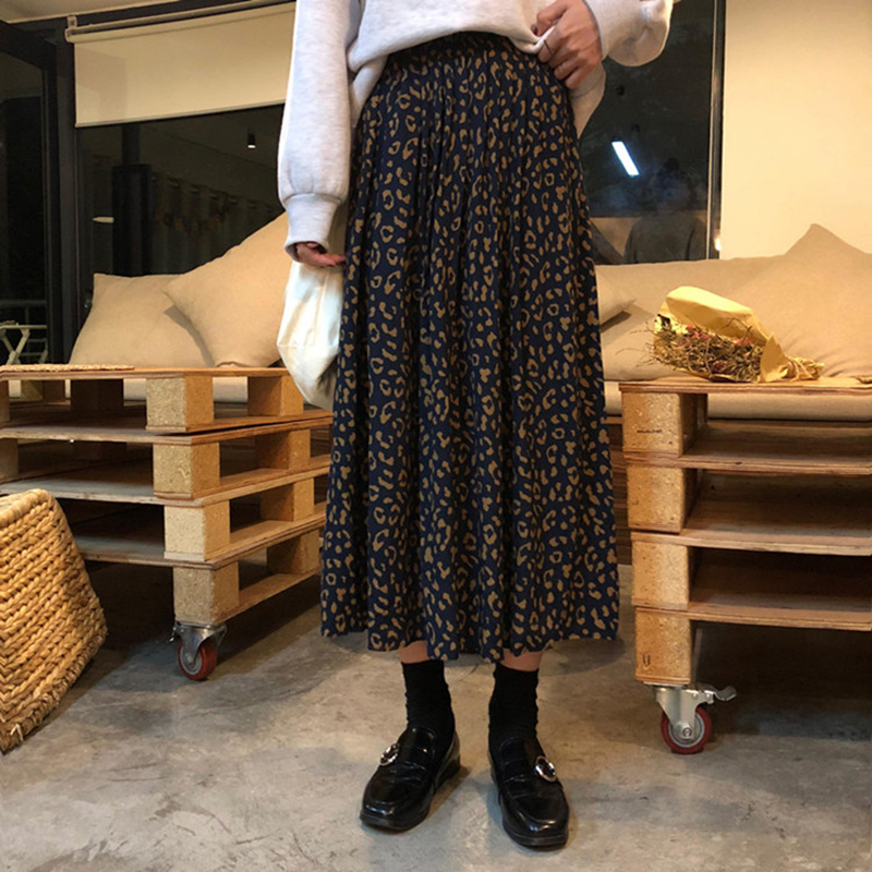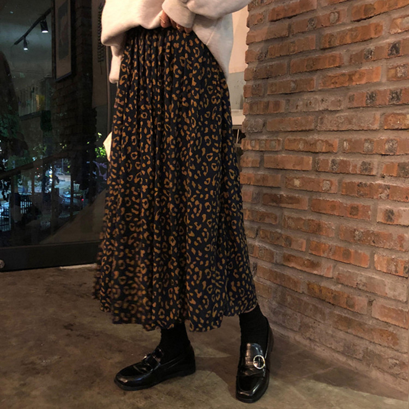 / 高腰顯瘦豹紋半身裙子女秋冬裝新款韓版chic學生復古風A字長裙子