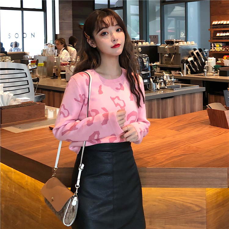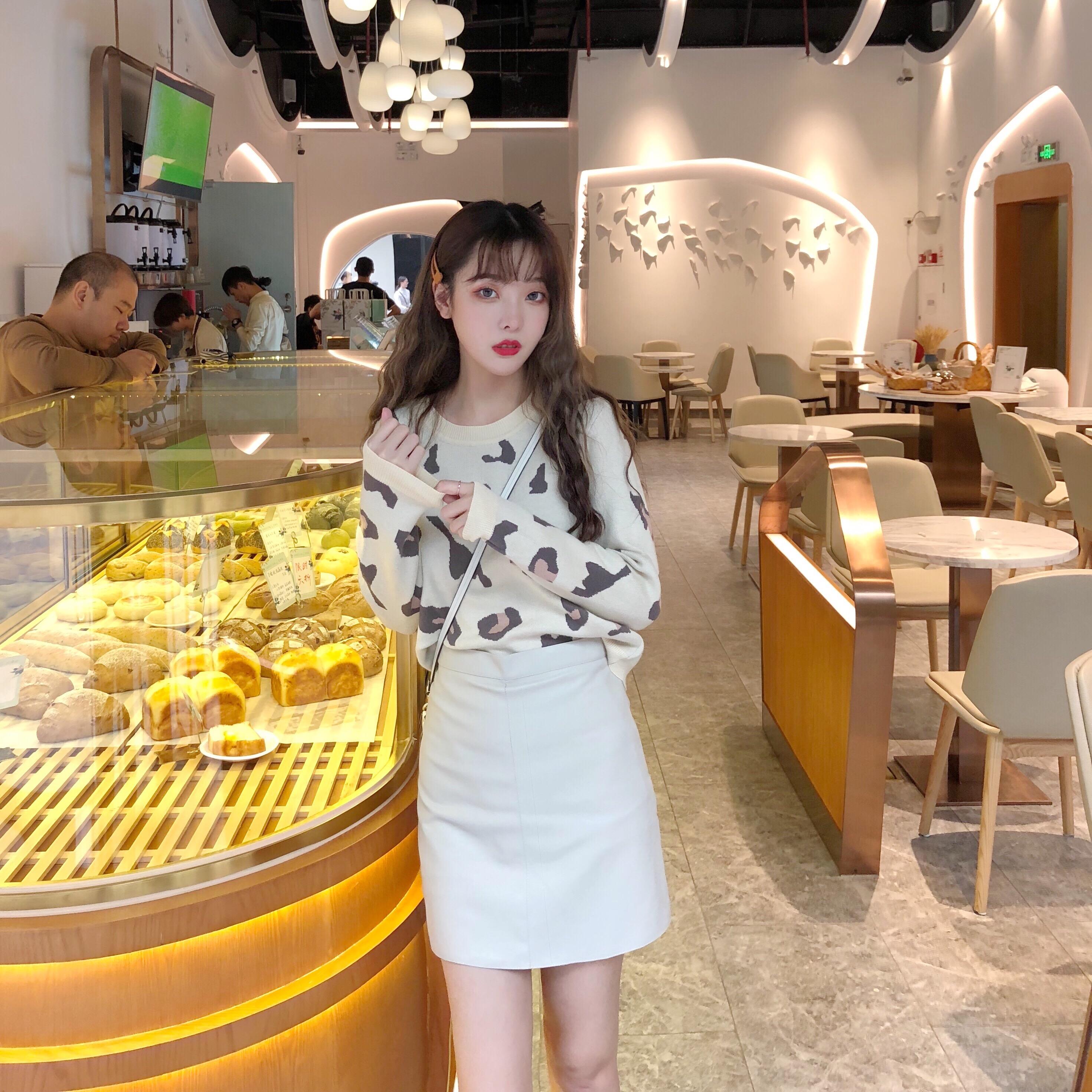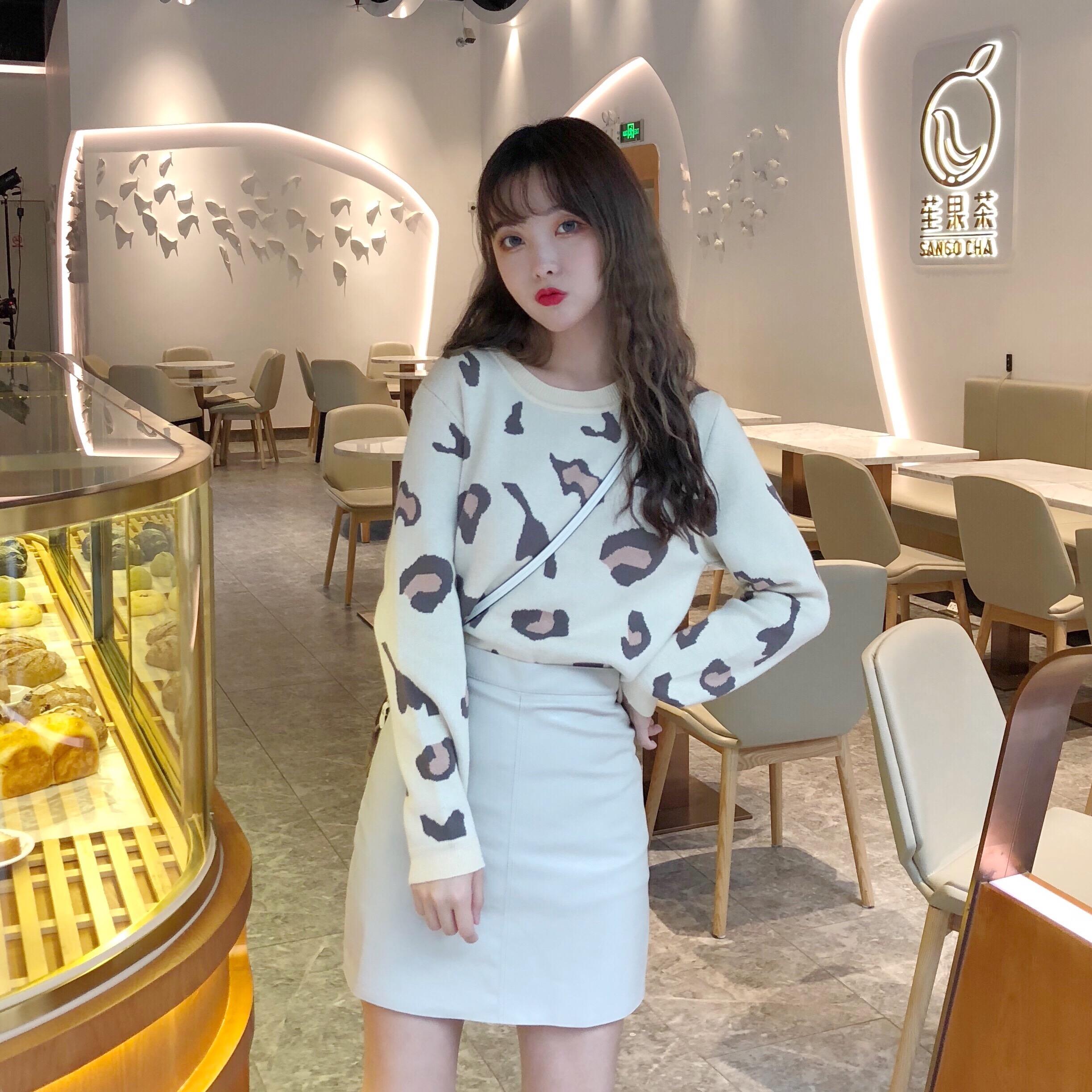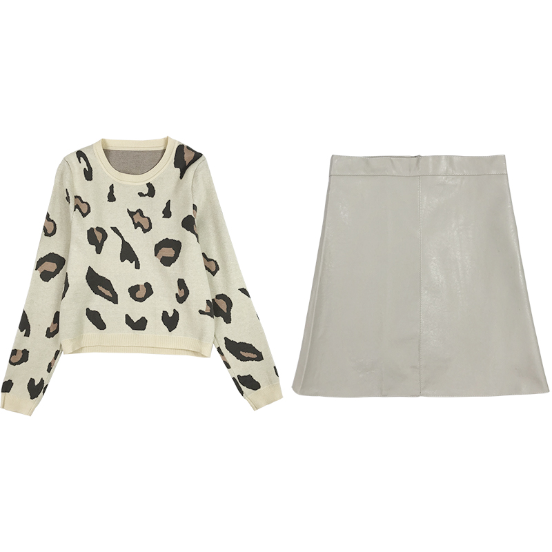 毛衣加裙子兩件套裝女秋冬新款豹紋長袖針織外套顯瘦高腰包臀皮裙