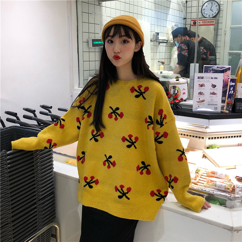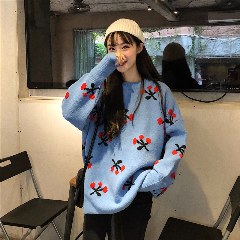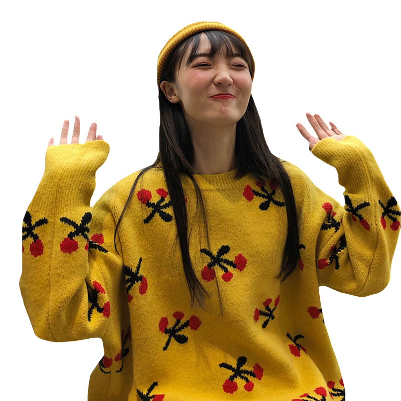 2018新款秋冬韓版寬松慵懶風小清新甜美櫻桃套頭超火針織衫毛衣女