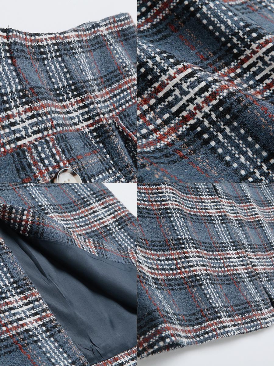 / MG小象高腰格子半身裙女中長款秋冬2018新款港味復古開叉a字裙子