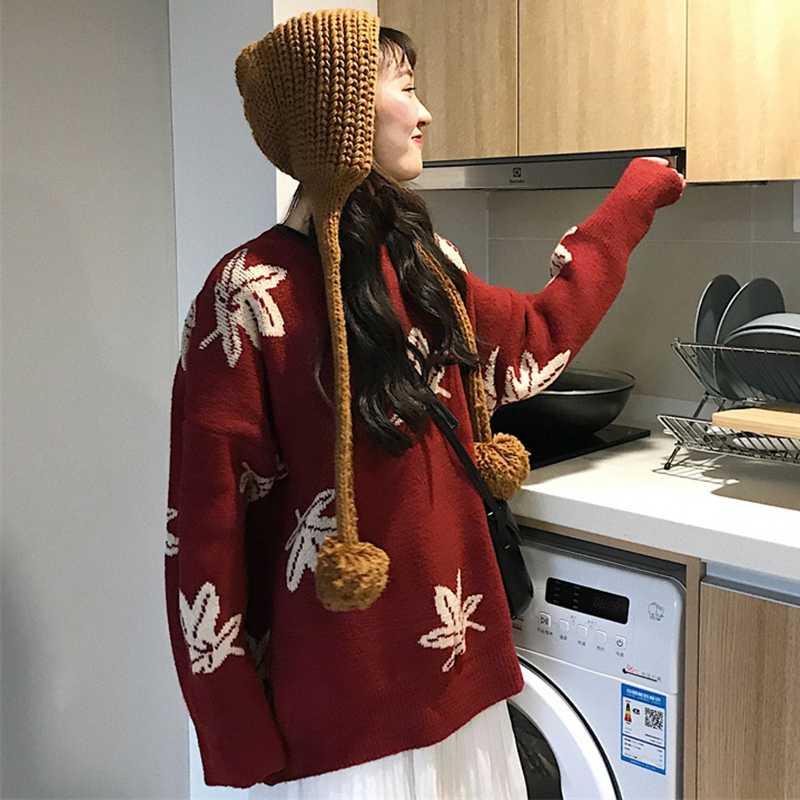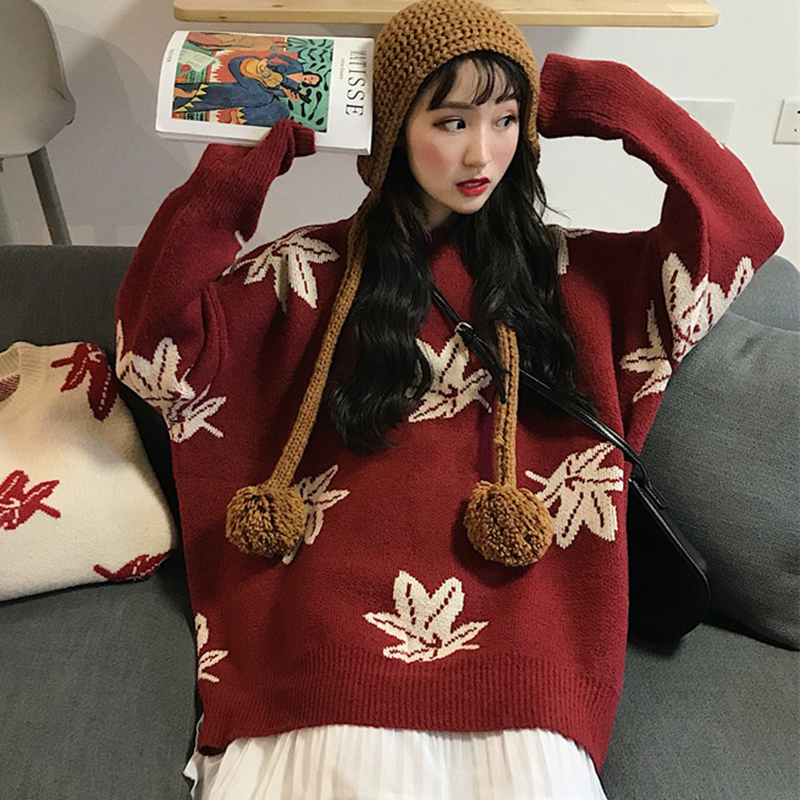 寬松圓領毛衣女秋冬裝2018新款韓版學生時尚上衣慵懶長袖針織外套
