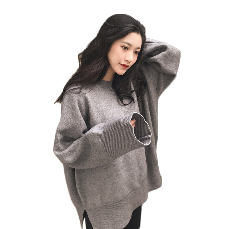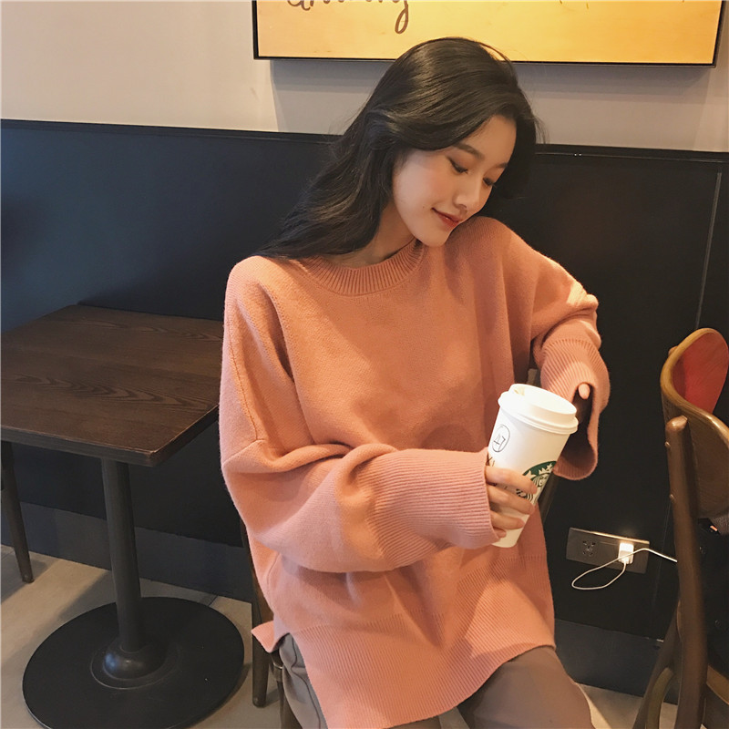 秋季女裝新款韓國厚實百搭寬松顯瘦慵懶套頭下擺開叉毛衣針織衫潮