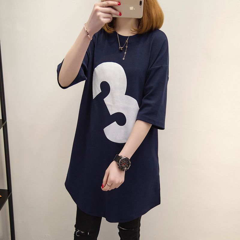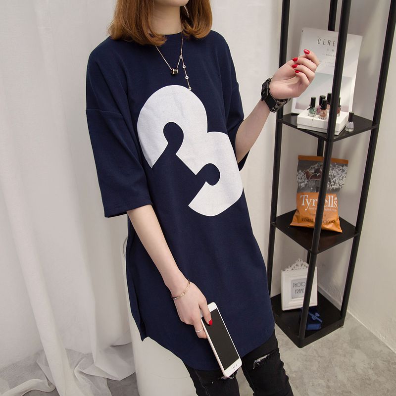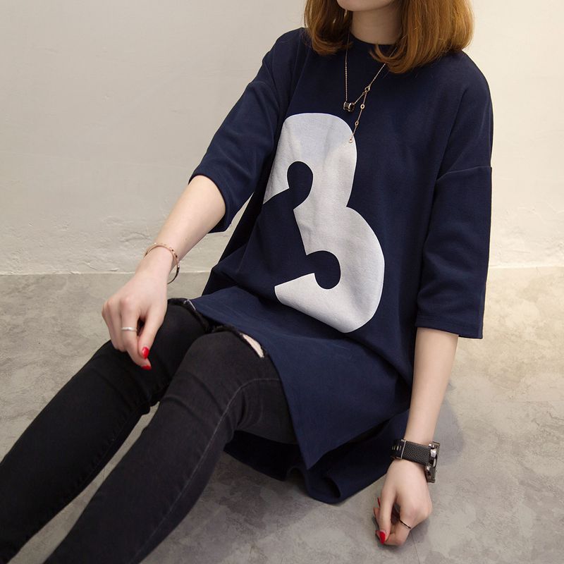 / 女士上衣女夏新款女裝套頭百搭韓版學生t恤中長款袖體恤衫女