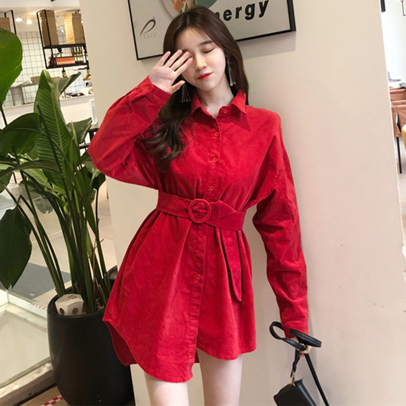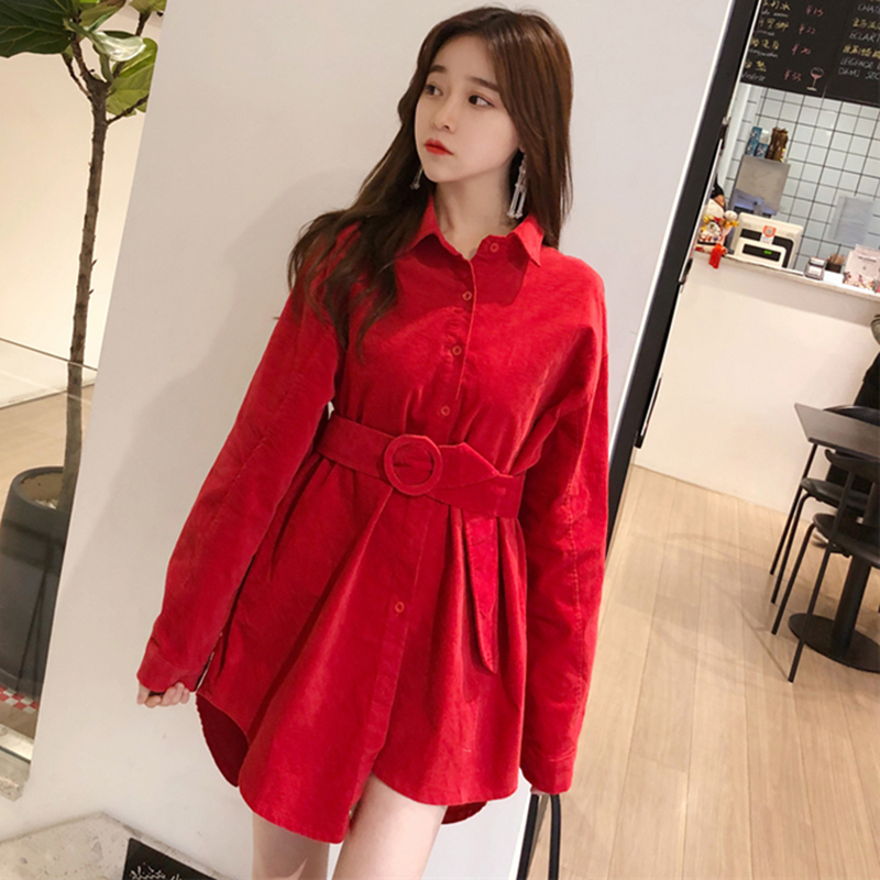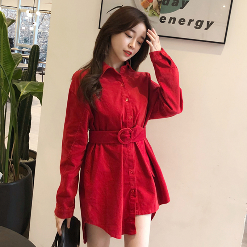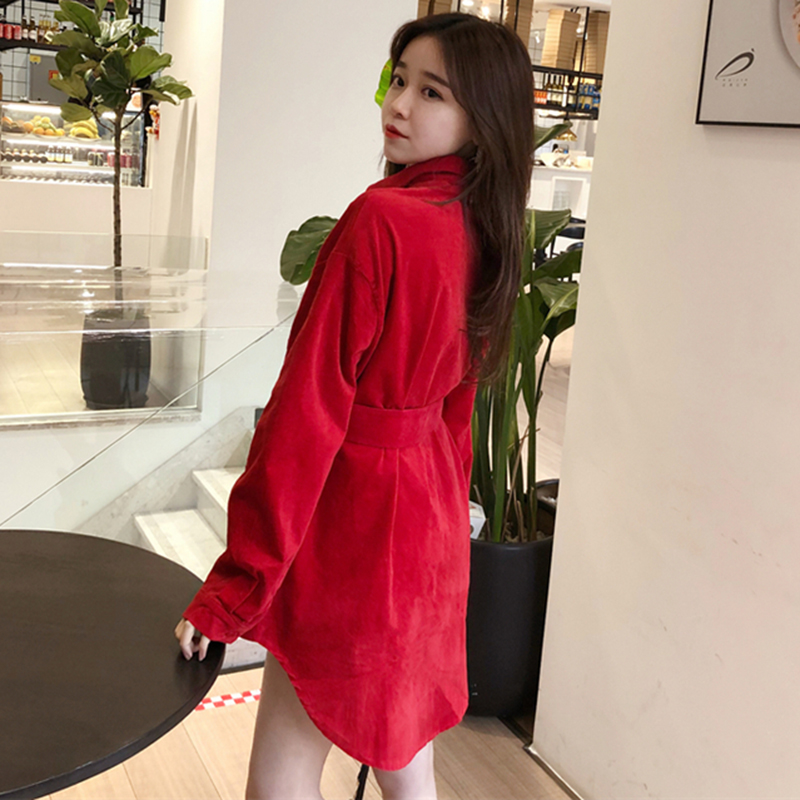/ 不規則中長款長袖襯衫女秋冬裝新款復古寬松外套學生時尚開衫上衣