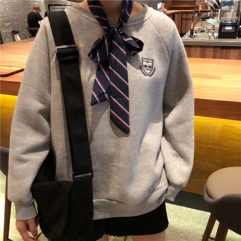/ 韓版時尚休閑套裝秋季刺繡加厚加絨衛衣外套+百褶半身裙兩件套女