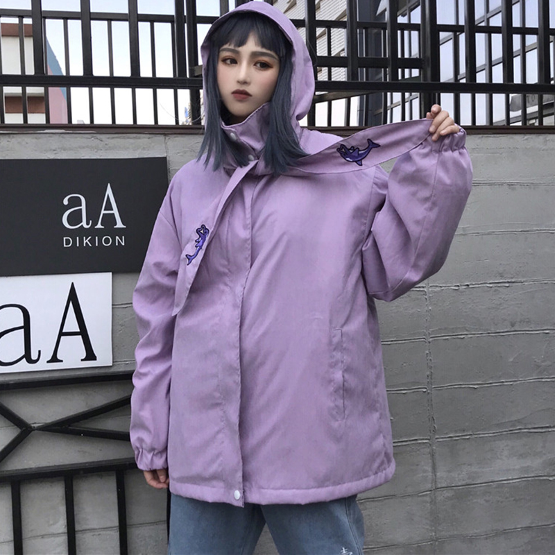 時尚刺繡寬松連帽棉襖2018冬季女裝新款學生中長款外套休閑棉衣服