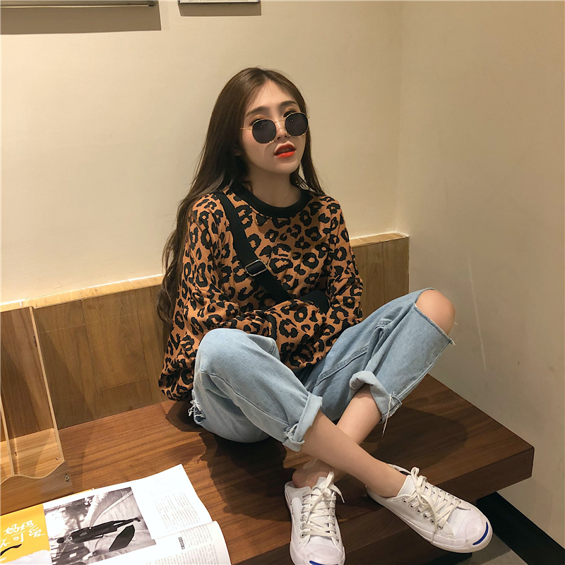 / 秋季女裝2018新款韓版原宿風豹紋寬松超火酷衛衣學生薄款套頭外套