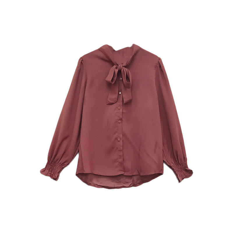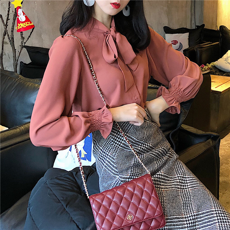 秋裝2018新款女裝韓國氣質寬松顯瘦系帶蝴蝶結襯衫女純色百搭襯衣