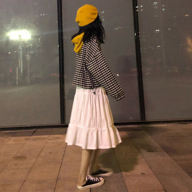 / 洋氣套裝女秋冬2018新款格子拼接連帽衛衣中長款高腰A字半身裙子