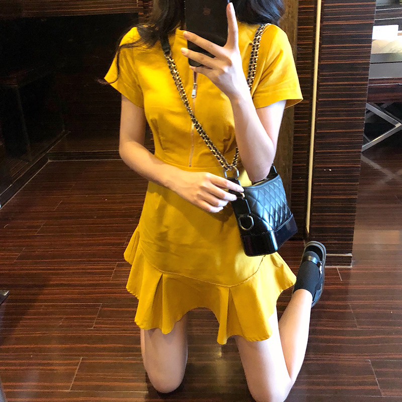 2018韓版新款收腰顯瘦仙女裙復古chic百搭時尚連衣裙溫柔少女短裙