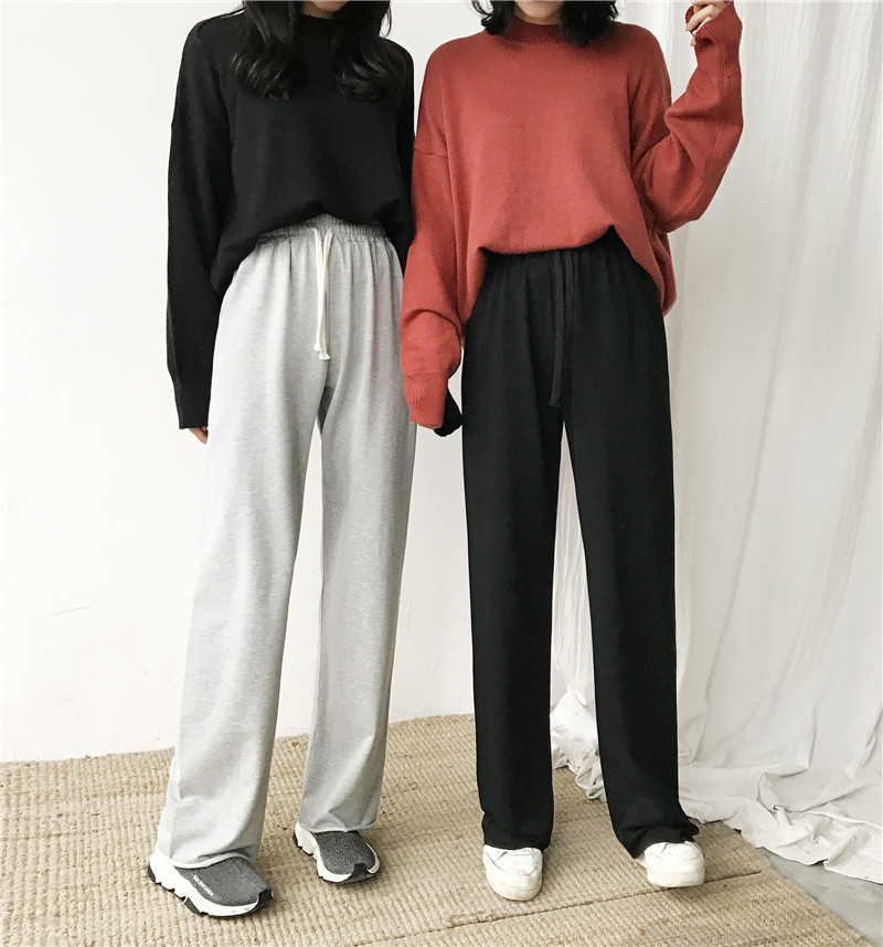 / 春季新款女裝寬松高腰闊腿褲女顯瘦松緊腰直筒褲百搭學生休閑褲子
