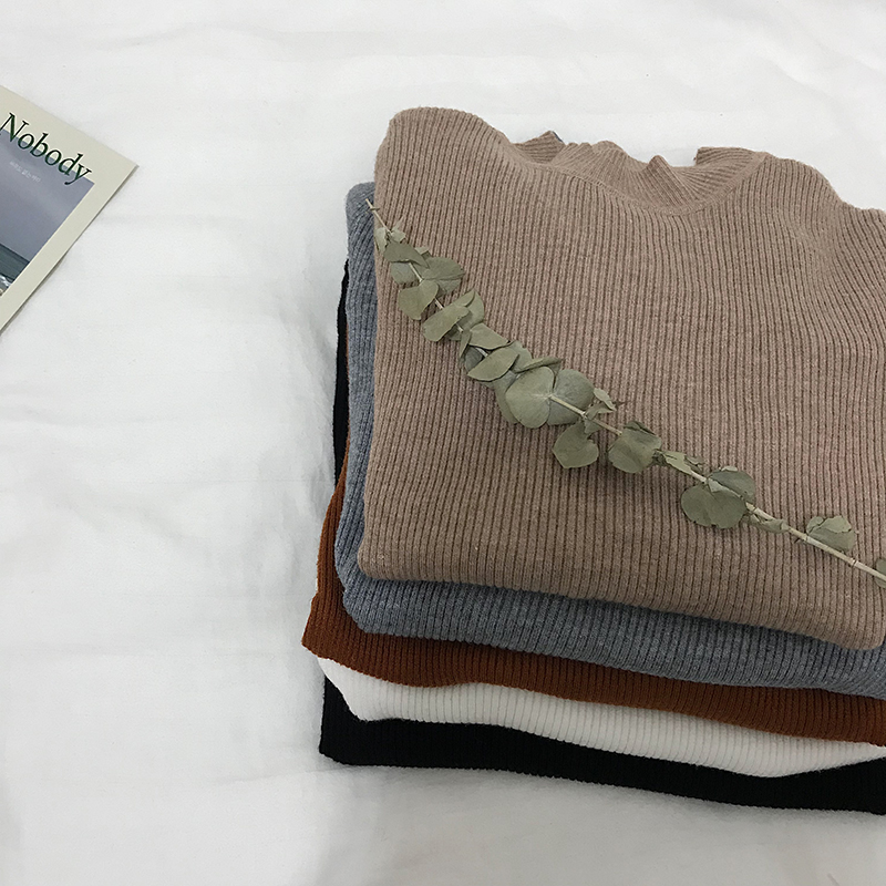 / 秋冬新款chic顯瘦打底衫氣質純色半高領網紅套頭針織衫毛衣上衣女