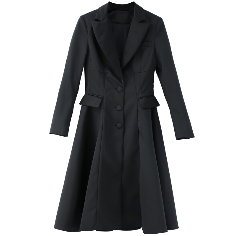 2018新款春秋風衣女中長款過膝韓版大擺連衣裙黑色chic大衣秋外套
