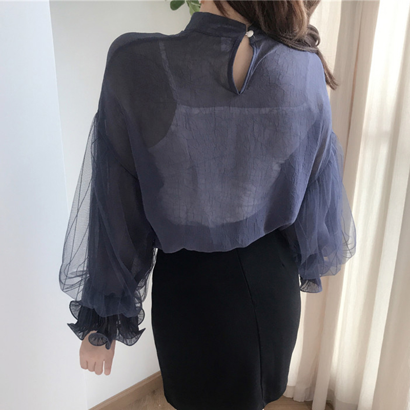 / 甜美兩件套裝女秋新款氣質蕾絲燈籠長袖雪紡衫修身打底吊帶短背心