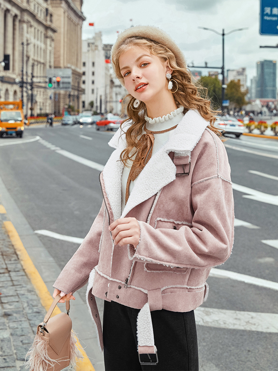 MG小象冬季毛呢外套女寬松學生2018新款粉色短款羊羔毛呢子大衣潮