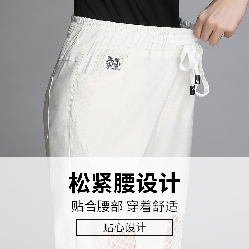 運動褲子女春夏破洞乞丐褲小腳哈倫九分褲高腰韓版寬松顯瘦休閑褲