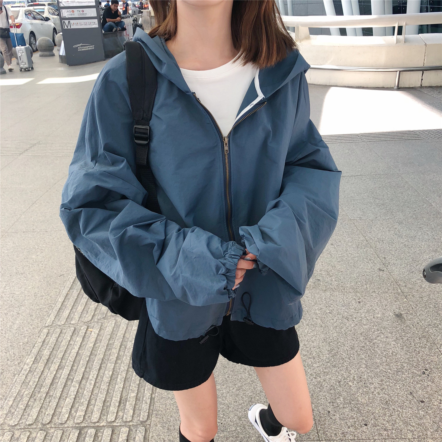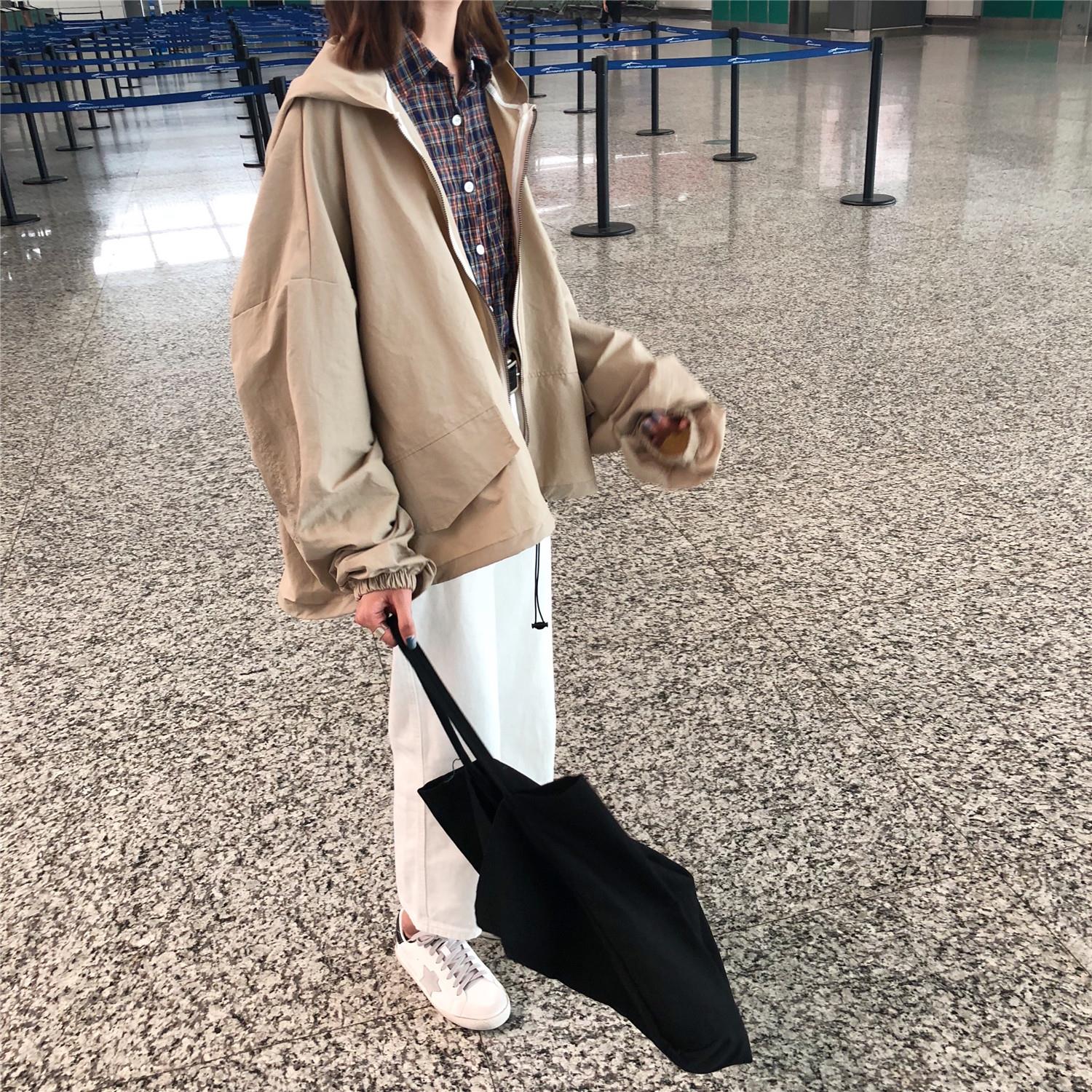 / 秋季女裝韓版BF風寬松復古連帽夾克風衣學生長袖休閑開衫上衣外套