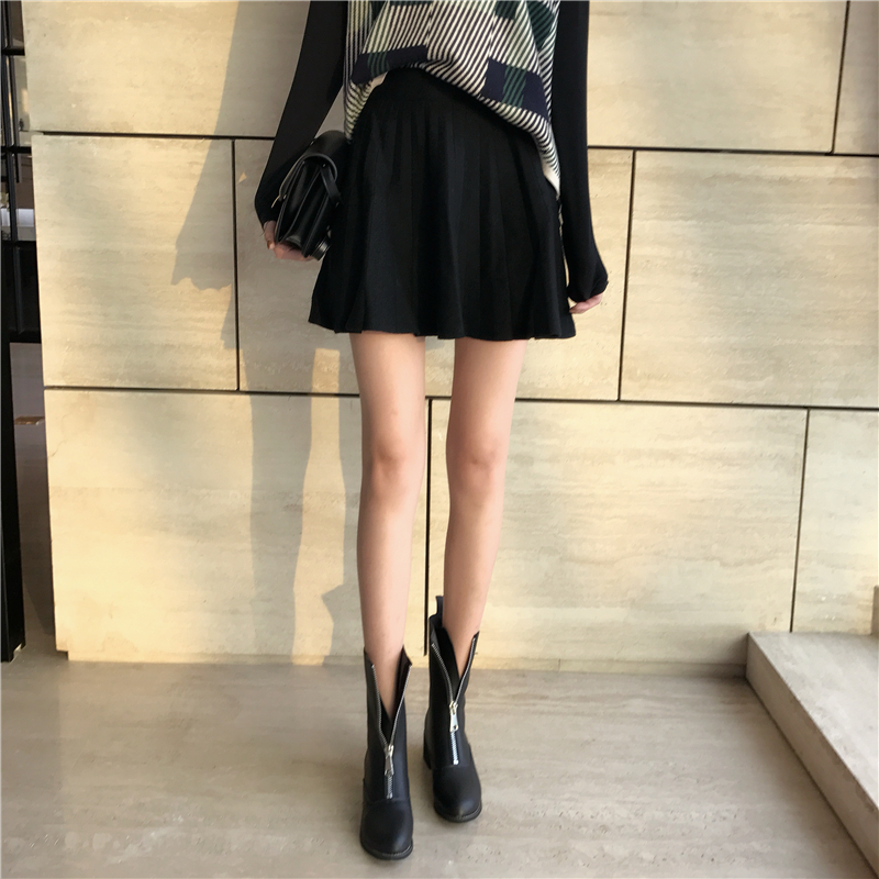網紅同款包芯紗針織格子馬甲女秋冬2018新款女+百搭針織傘裙套裝