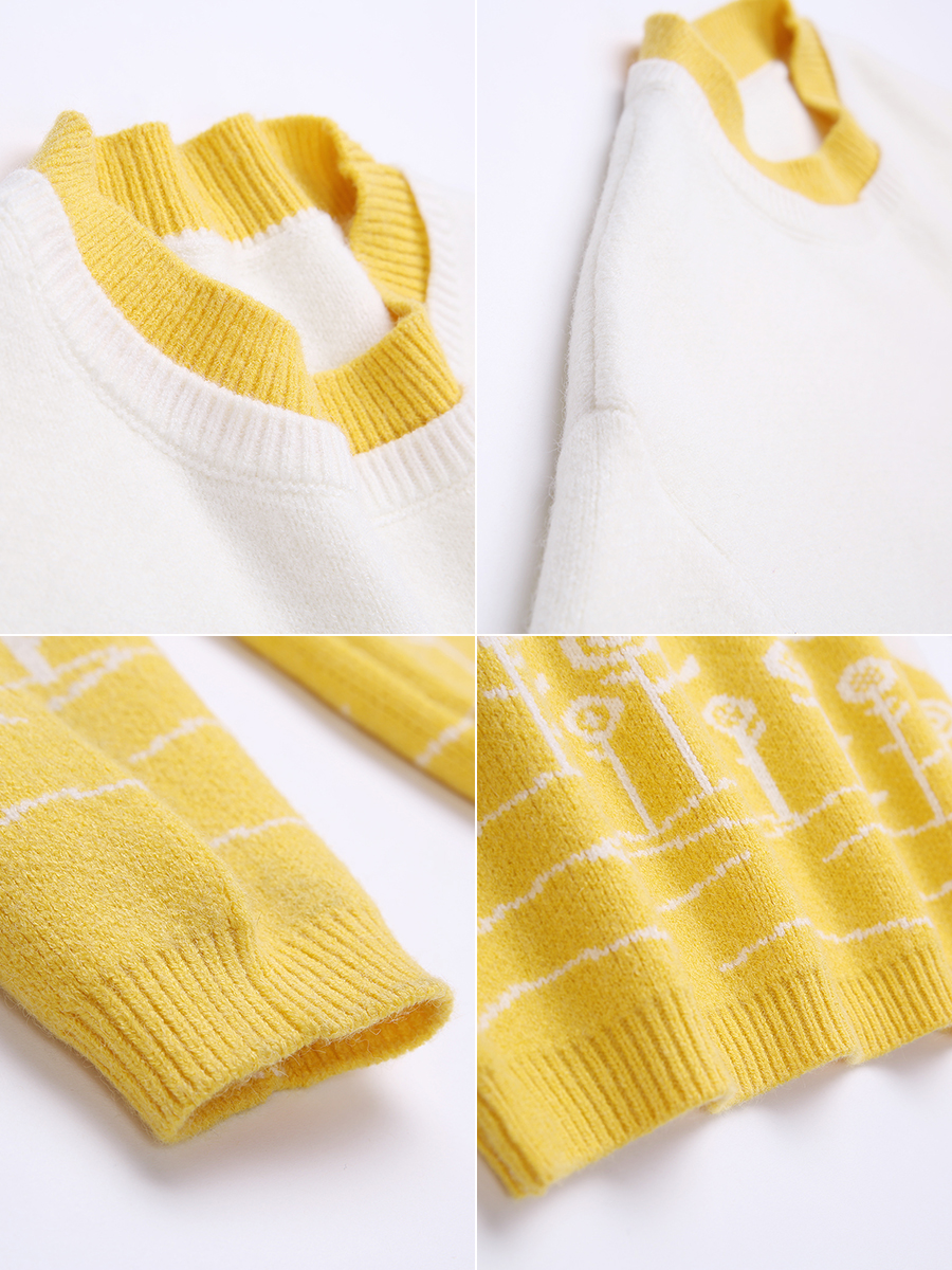 MG小象拼色針織衫女學生寬松套頭上衣2018新款甜美學院風冬季毛衣