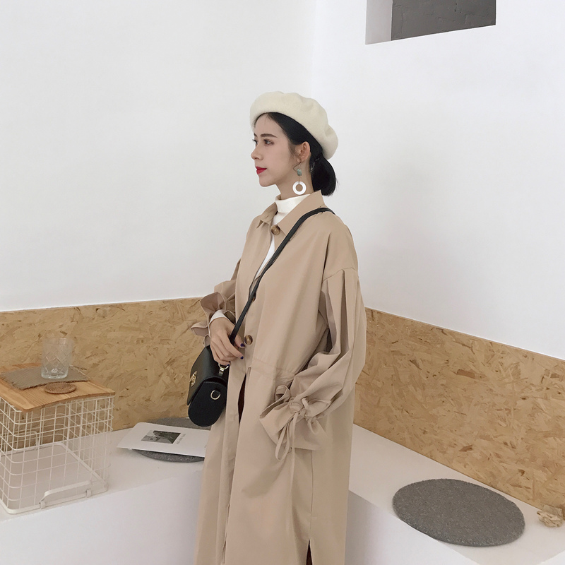 / 復古韓國chic風秋裝女2018新款百搭中長款系帶長袖時尚風衣外套潮