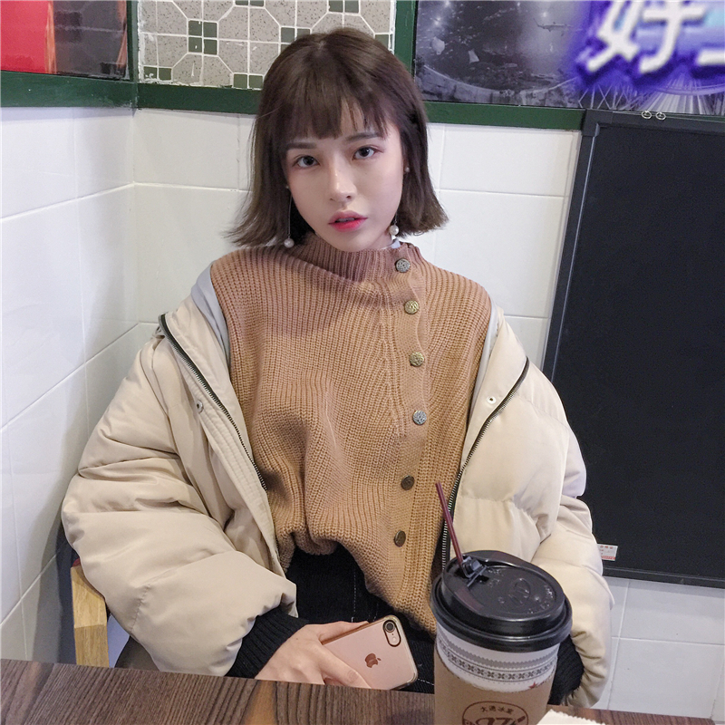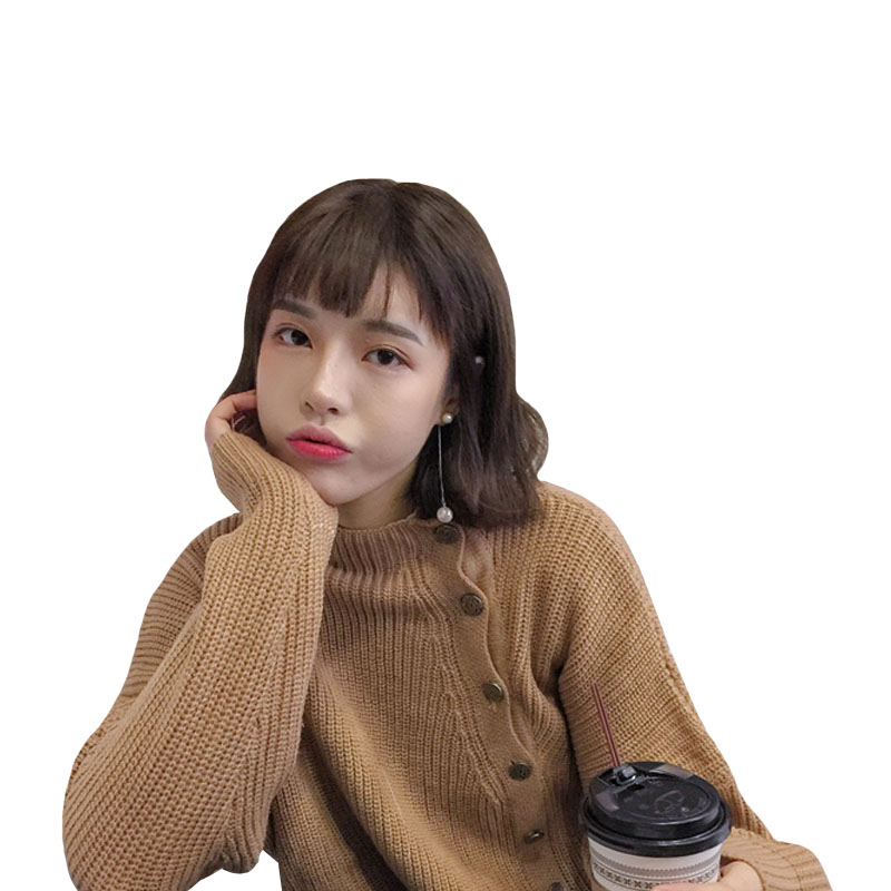 / 秋冬女裝韓版設計斜邊紐扣慵懶風毛衣長袖寬松針織衫開衫上衣外套