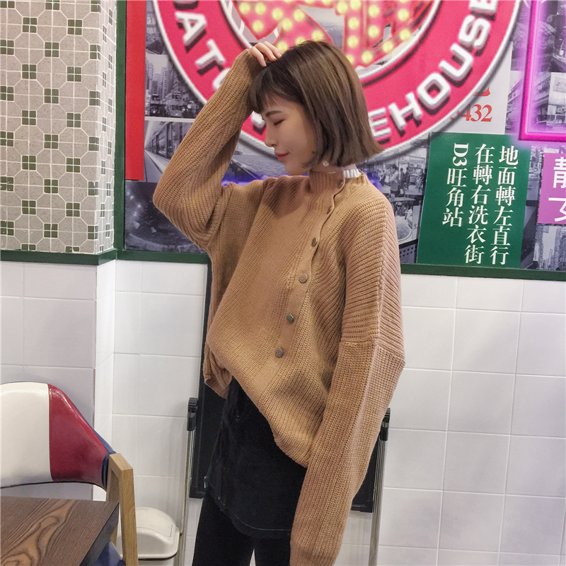 秋冬女裝韓版設計斜邊紐扣慵懶風毛衣長袖寬松針織衫開衫上衣外套