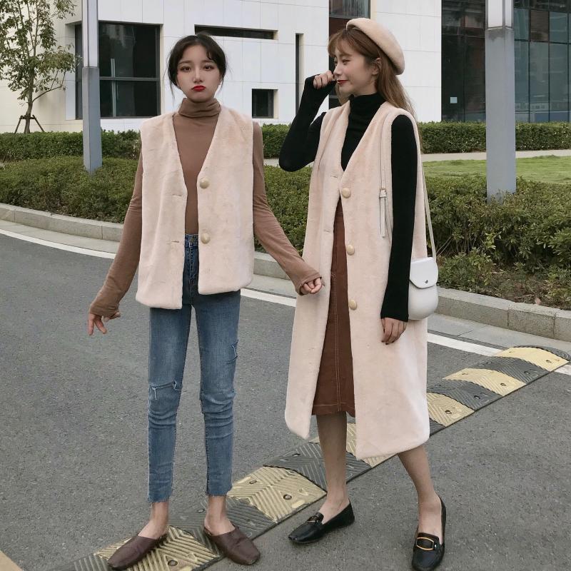 / 2018新款秋冬女裝韓版寬松深V領加厚毛絨馬甲背心中長款開衫外套