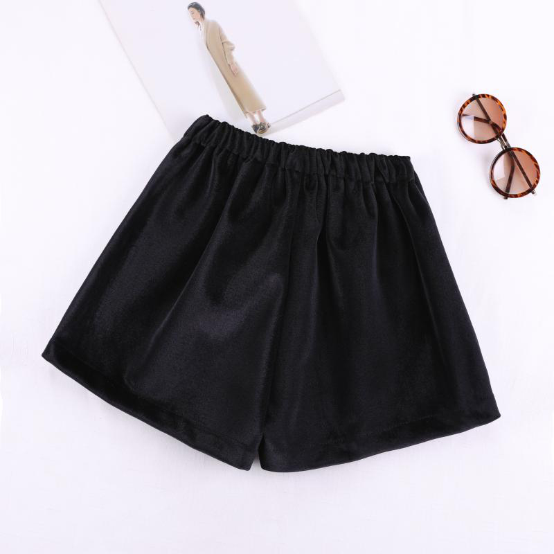 / 金絲絨黑褲子秋冬女裝2018新款韓版高腰寬松闊腿短褲時尚外穿靴褲