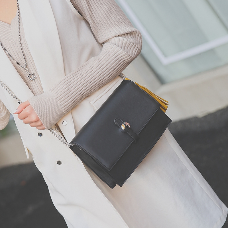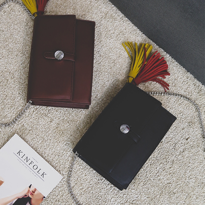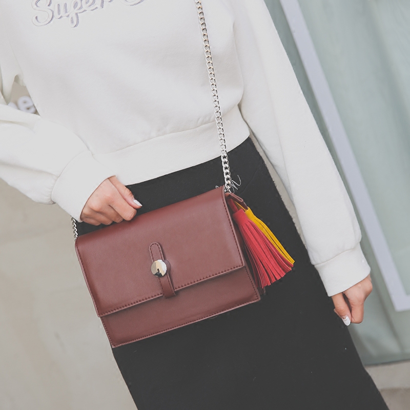 / 新款韓版迷你鏈條小方包女時尚撞色流蘇小包斜挎包單肩女包潮
