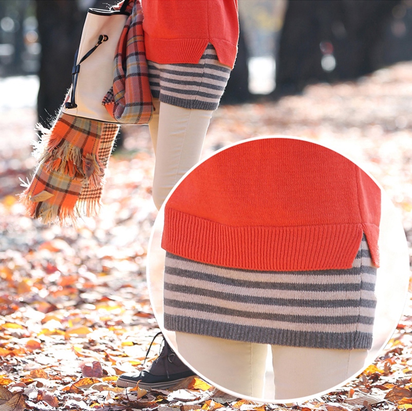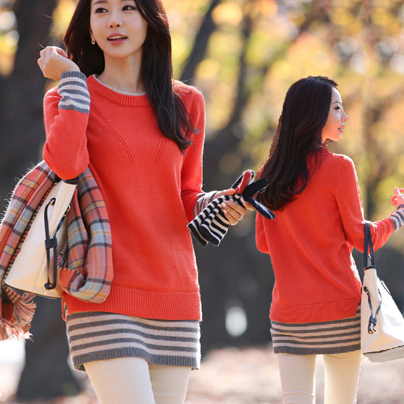 宜朵中長款套頭打底毛衣女春季假兩件包臀毛衣裙女針織衫毛衣打底