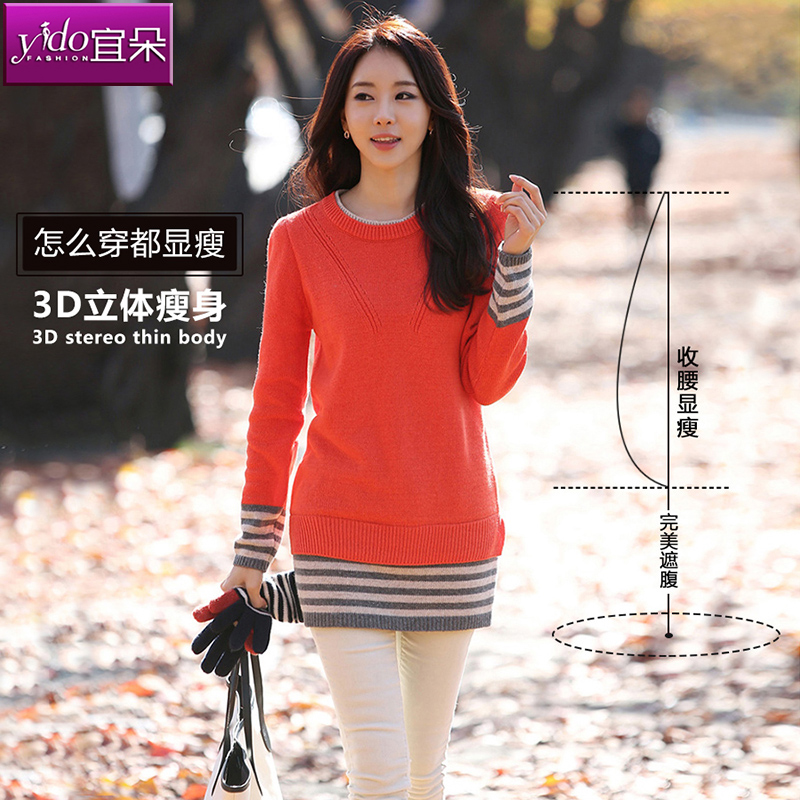 / 宜朵中長款套頭打底毛衣女春季假兩件包臀毛衣裙女針織衫毛衣打底