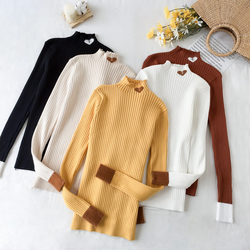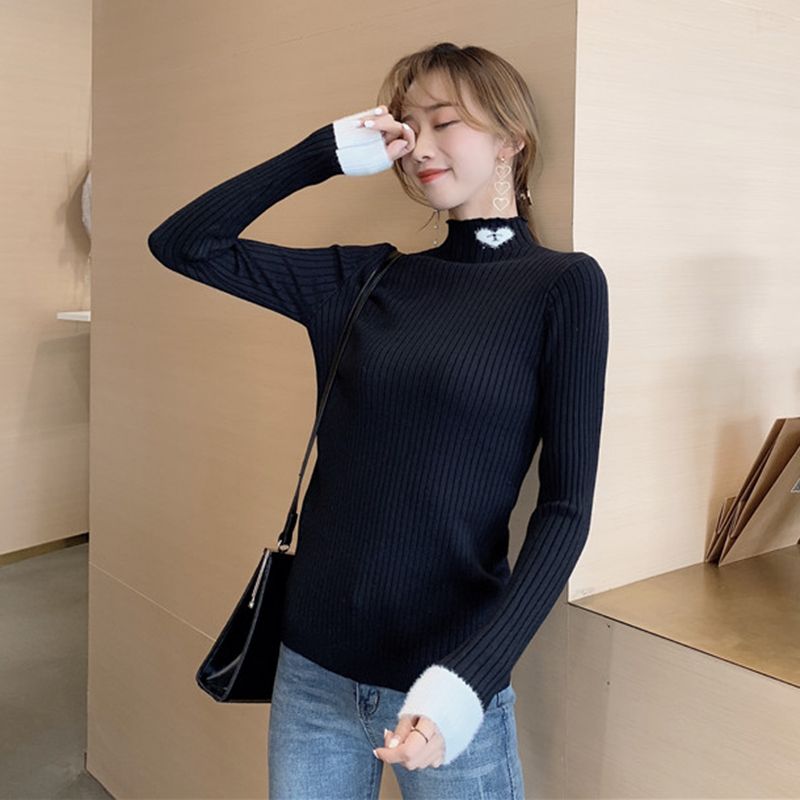半高領字母套頭針織衫女秋冬裝2018新款韓版氣質修身長袖打底毛衣