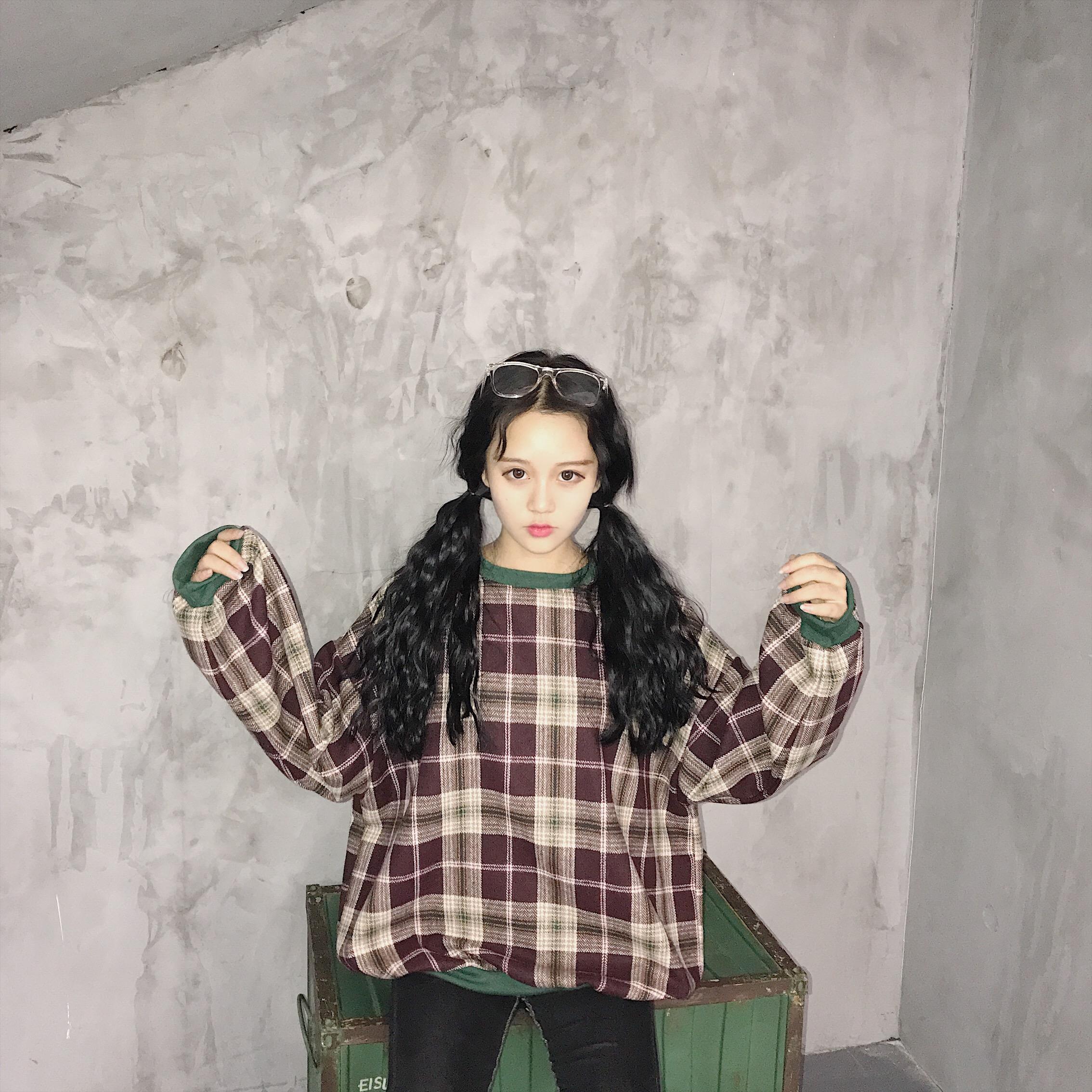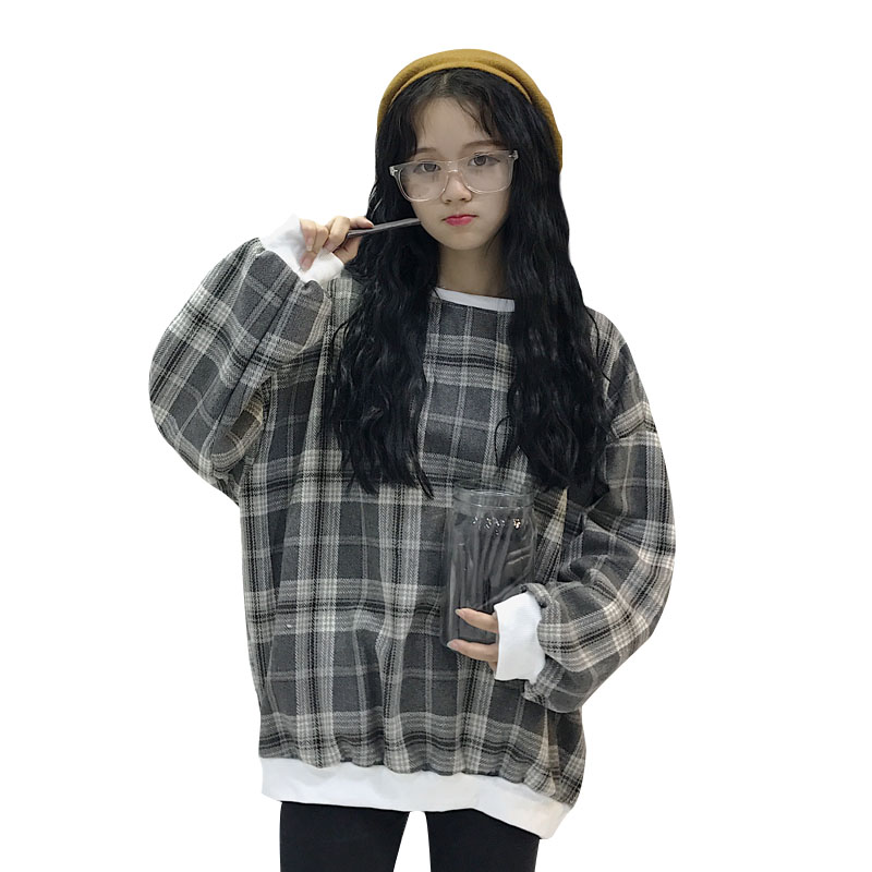 / 秋季女裝2018新款韓版學院風復古寬松格子長袖套頭衛衣上衣外套潮