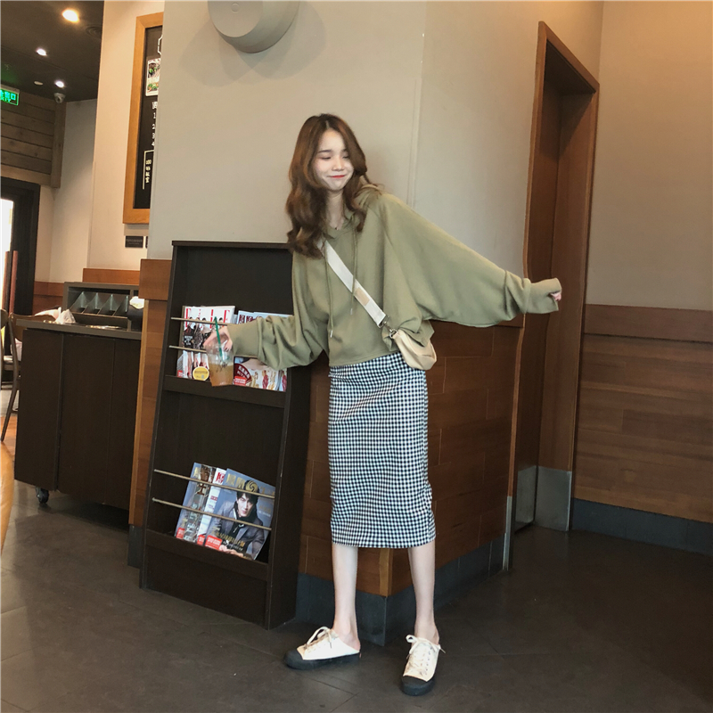 秋季女裝韓版短款簡約蝙蝠袖套頭連帽衛衣寬松純色長袖上衣外套潮