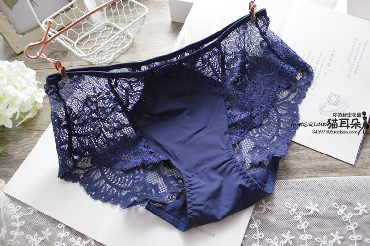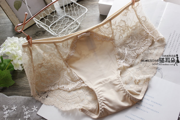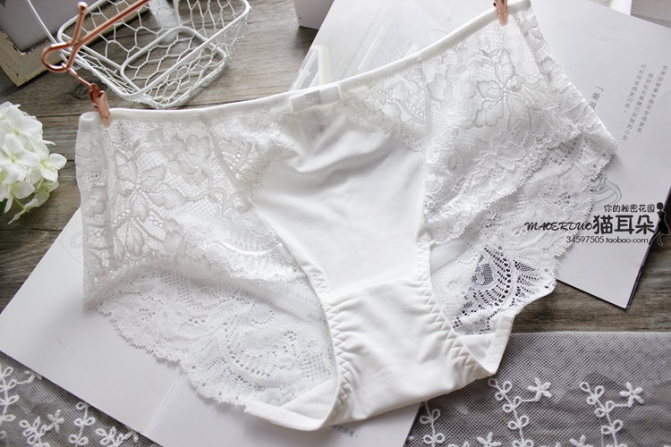 浪漫旖旎內在細節柔軟蕾絲潤肌冰絲包臀舒適中腰女內褲