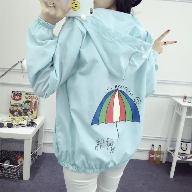 / 新款少女春夏印花衣服薄款防曬衫寬松連帽中長款外套初中高中學生