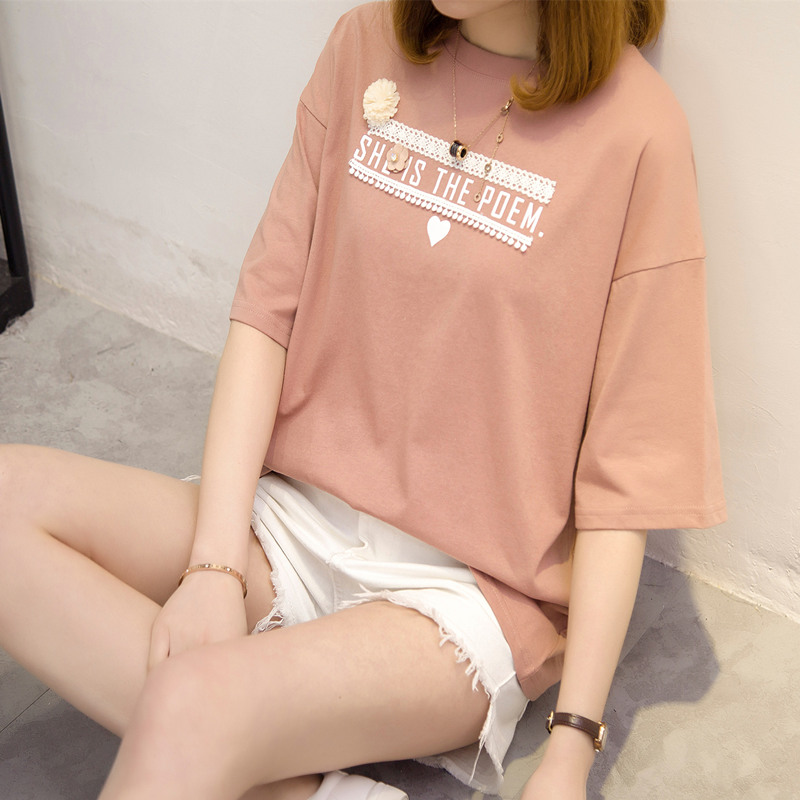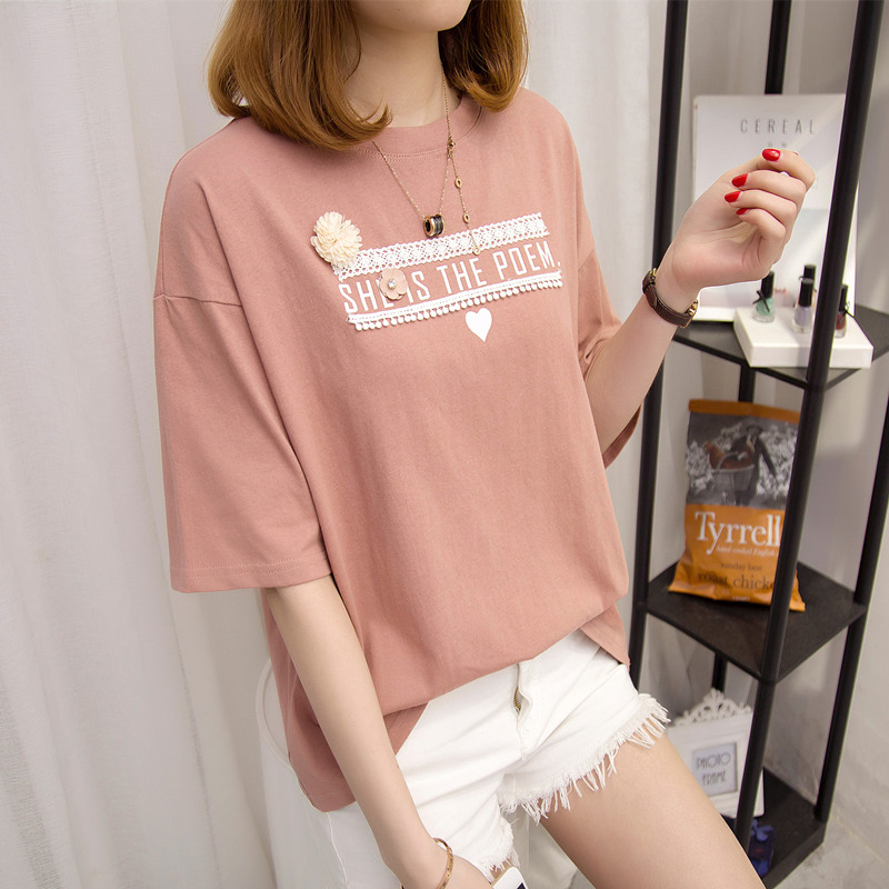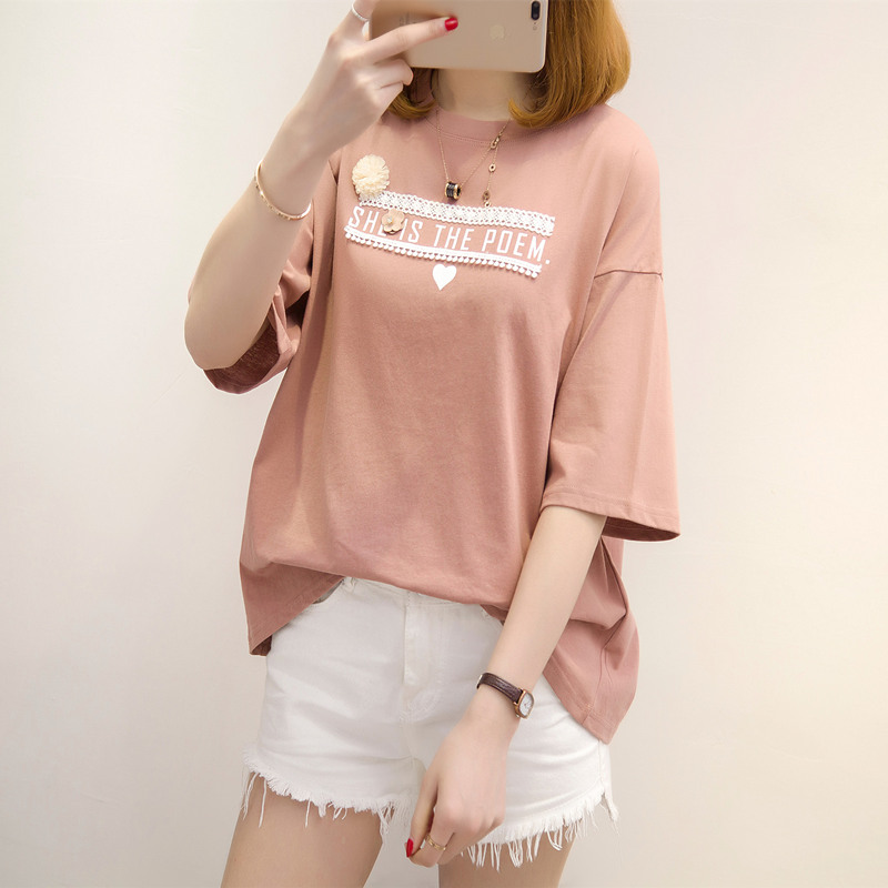 短袖t恤上衣女夏春裝新款寬松大碼短袖體恤衫韓版百搭上衣女