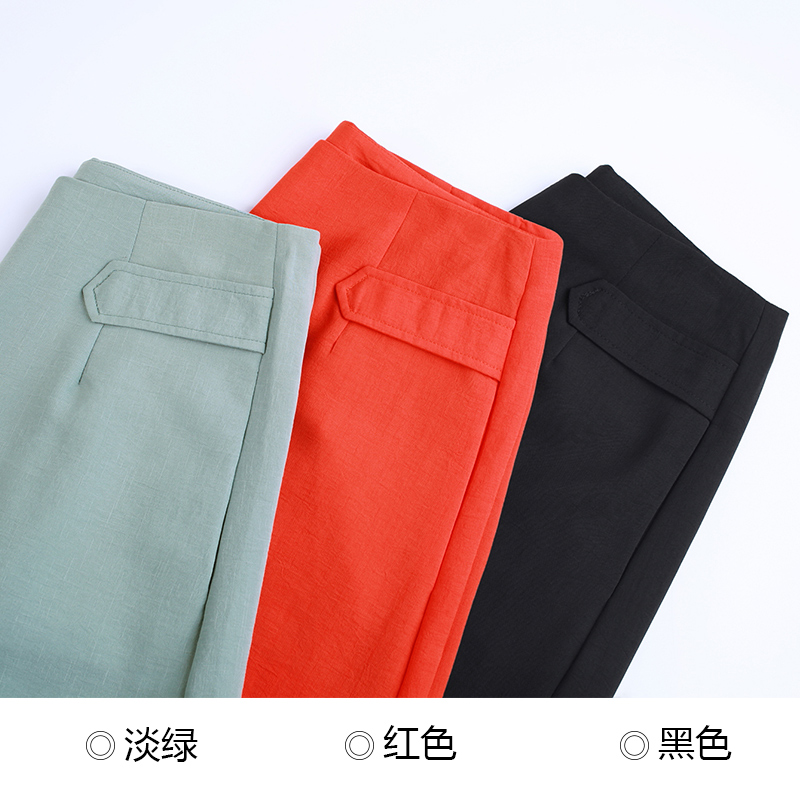 a字顯瘦棉麻高腰七分闊腿褲春夏大碼寬松九分褲休閑褲寬腳甩腿褲