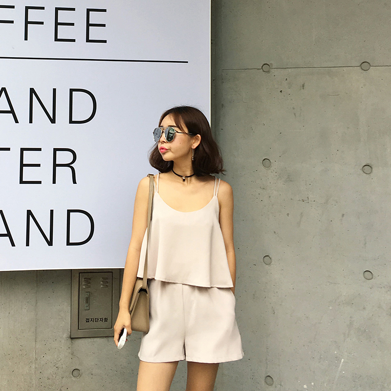 / 2017夏裝新款 韓版吊帶背后交叉連體褲女短褲薄款顯瘦休閑褲女潮