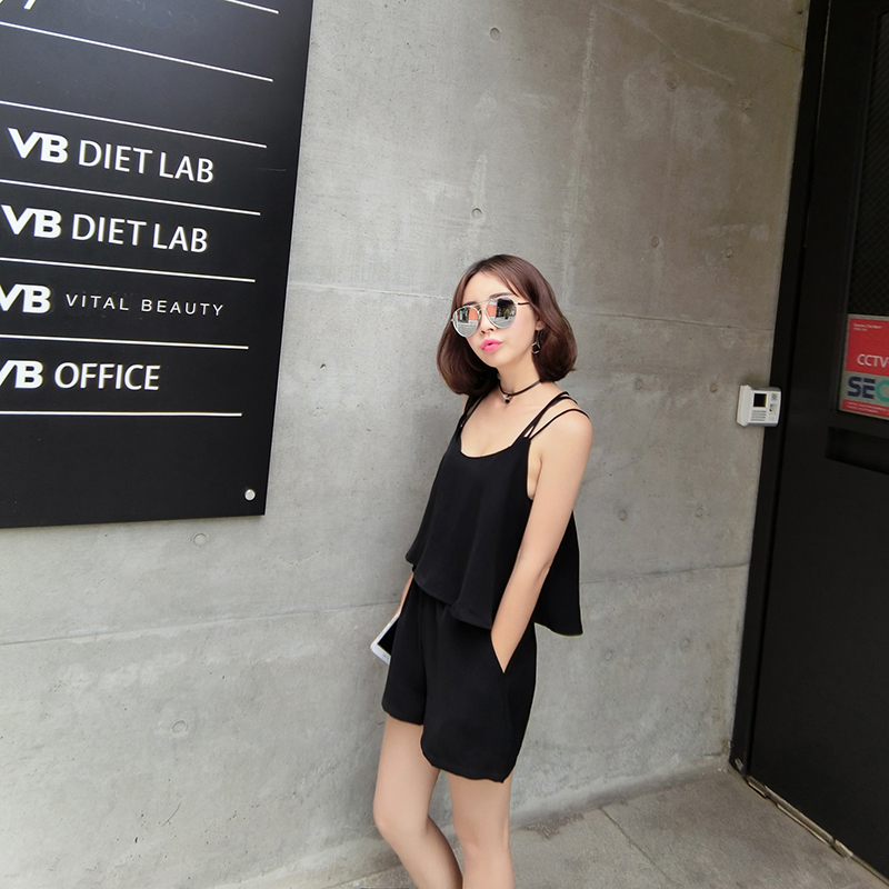 2017夏裝新款 韓版吊帶背后交叉連體褲女短褲薄款顯瘦休閑褲女潮