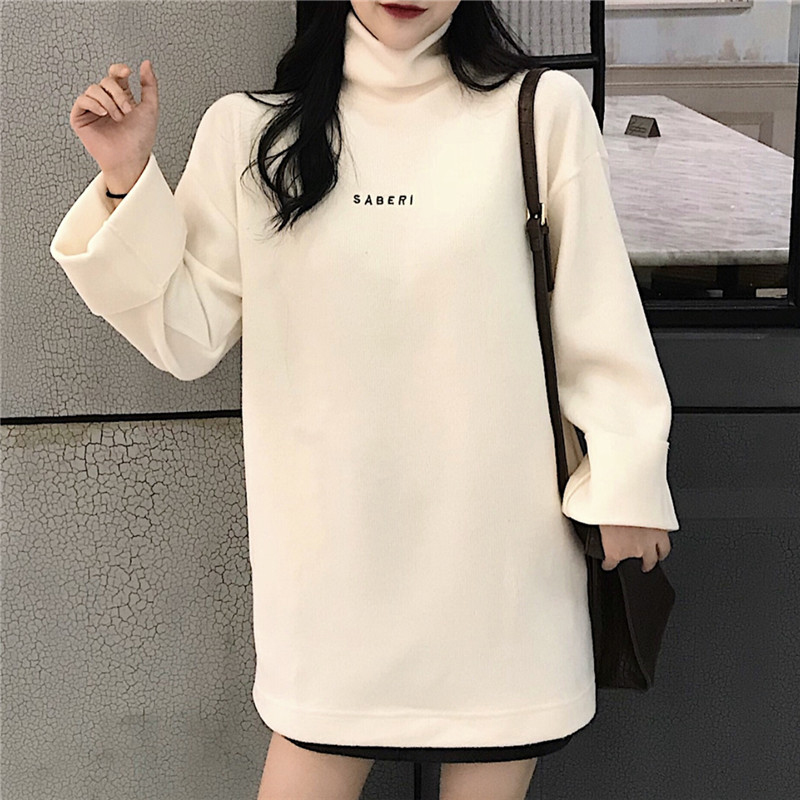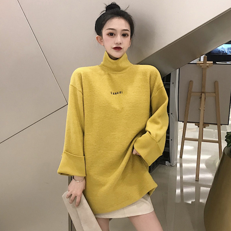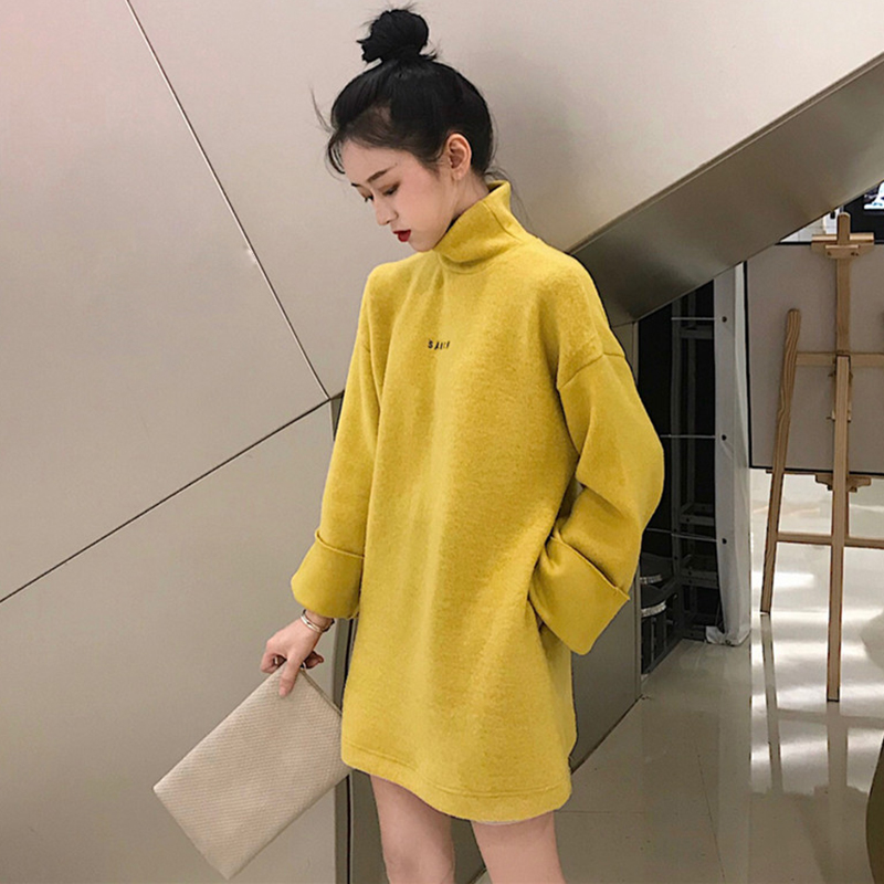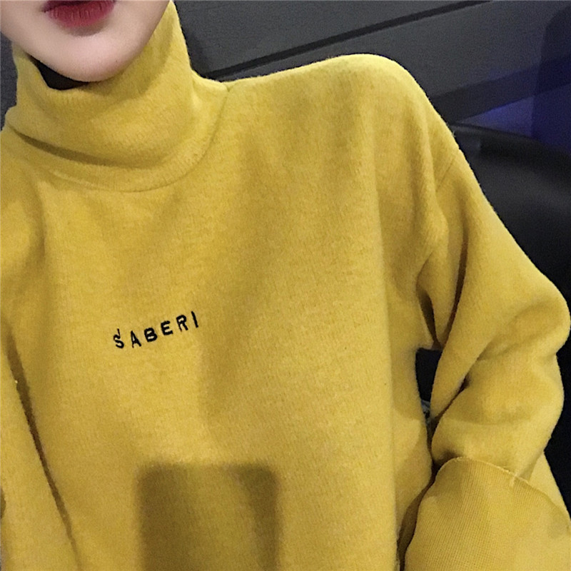 高領寬松長袖加絨衛衣2018新款秋冬裝港風怪味少女外套字母上衣潮