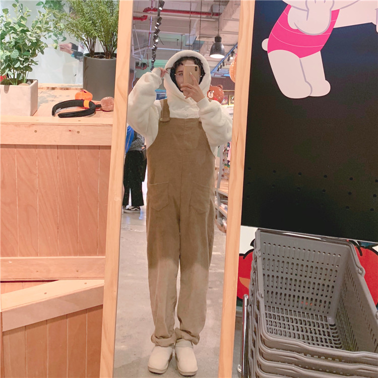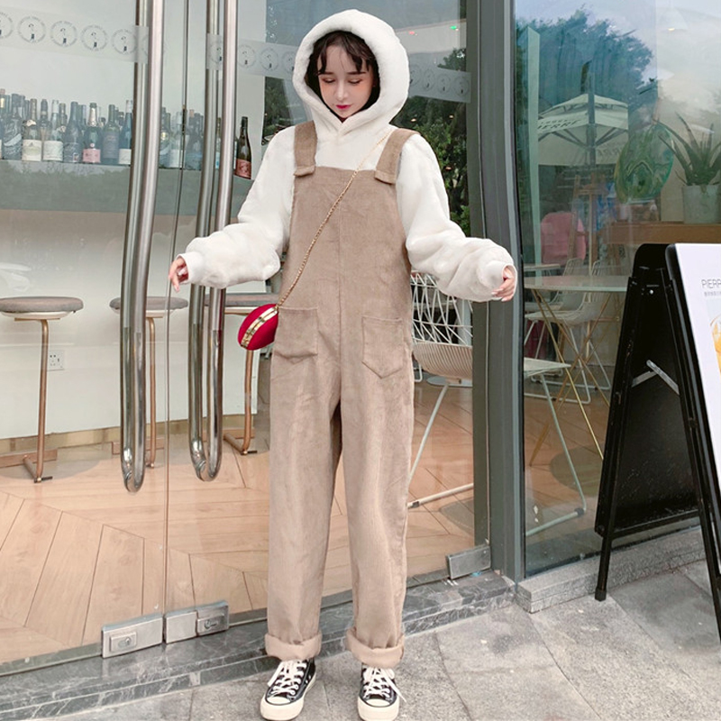 萬能調節的燈芯絨背帶連體褲,胖瘦都可駕馭~