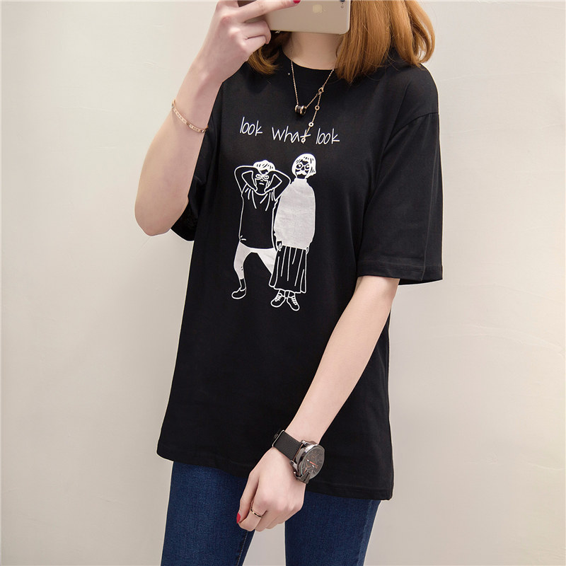 女裝春裝新款潮女體恤短袖卡通韓版寬松上衣純色打底衫t恤女